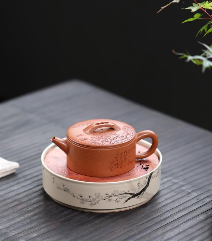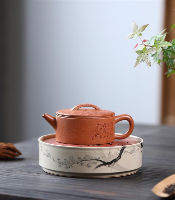 150cc原礦降坡泥堆繪梅花漢瓦茶壺POT8853
