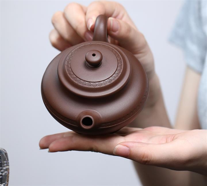 【泥料特點】砂土氣重,似淳實農民,日久使用,漸露鋒芒,養成變化,溫潤莊重。紫砂是壹種雙重氣孔結構的多孔性材質,氣孔微細,密度高。用紫砂壺沏茶,不失原味,且香不渙散,得茶之真香真味。紫砂使用越久,壺身色澤越發光亮照人,氣韻溫雅。紫砂壺長久使用器身會因撫摸擦拭,變得越發溫潤光澤。