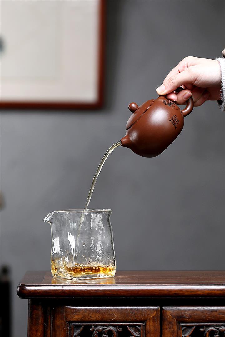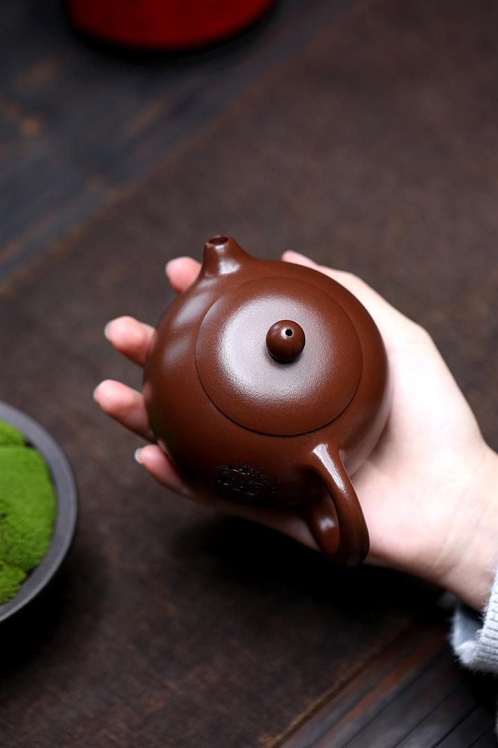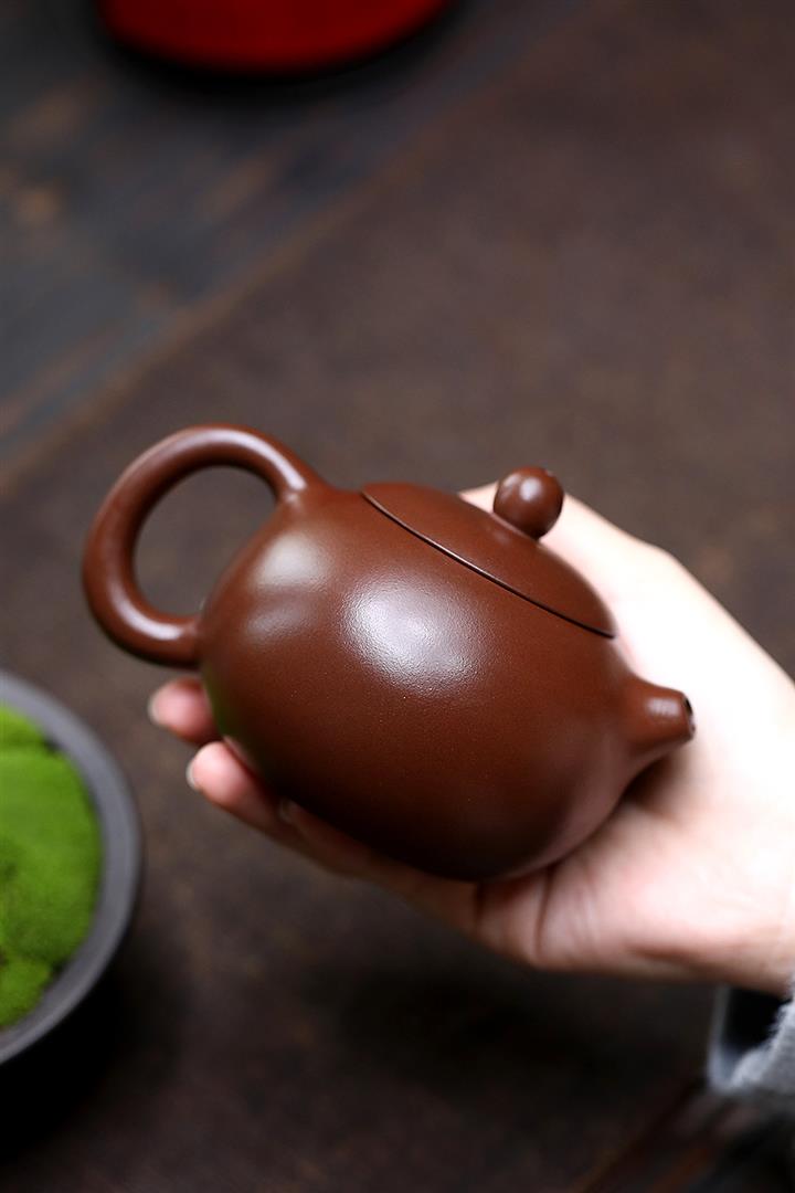 【作品介紹】此款壺形線條流暢,壺把,壺嘴,壺身壹氣呵成栩栩如生,是收藏把玩的好壺,泥料色澤古樸典雅,日久使用,漸露鋒芒,養成變化快,溫潤莊重,用其泡茶,使用的年代久,壺身就溫潤,泡出來的茶湯也就醇郁芳馨。