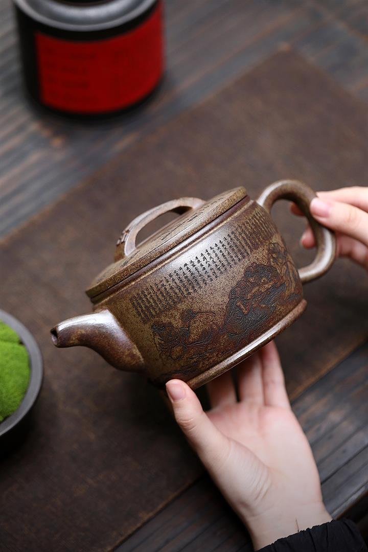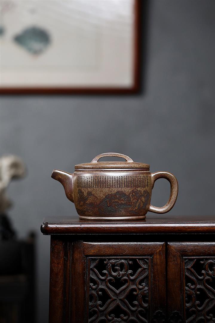 【作品介紹】此款壺形線條流暢,壺把,壺嘴,壺身壹氣呵成栩栩如生,是收藏把玩的好壺,泥料色澤古樸典雅,日久使用,漸露鋒芒,養成變化快,溫潤莊重,用其泡茶,使用的年代久,壺身就溫潤,泡出來的茶湯也就醇郁芳馨。