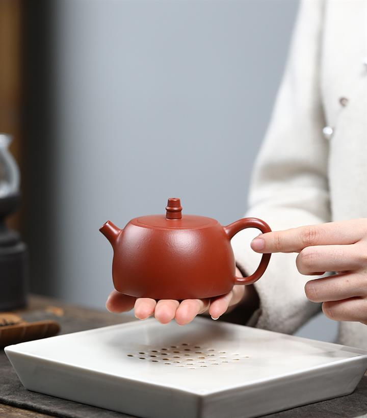 【泥料特點】砂土氣重,似淳實農民,日久使用,漸露鋒芒,養成變化,溫潤莊重。紫砂是壹種雙重氣孔結構的多孔性材質,氣孔微細,密度高。用紫砂壺沏茶,不失原味,且香不渙散,得茶之真香真味。紫砂使用越久,壺身色澤越發光亮照人,氣韻溫雅。紫砂壺長久使用器身會因撫摸擦拭,變得越發溫潤光澤。
