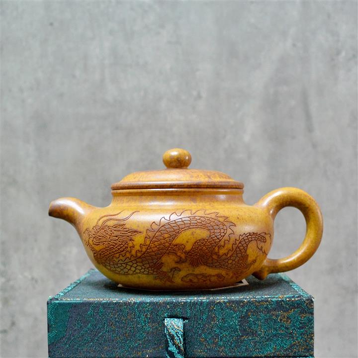 原礦綠泥祥雲魚化龍紫砂壺POT4616