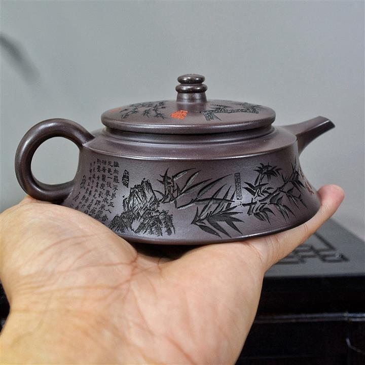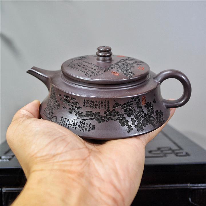 【作品介紹】此款壺形線條流暢,壺把,壺嘴,壺身壹氣呵成栩栩如生,是收藏把玩的好壺,泥料色澤古樸典雅,日久使用,漸露鋒芒,養成變化快,溫潤莊重,用其泡茶,使用的年代久,壺身就溫潤,泡出來的茶湯也就醇郁芳馨。