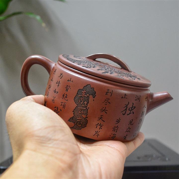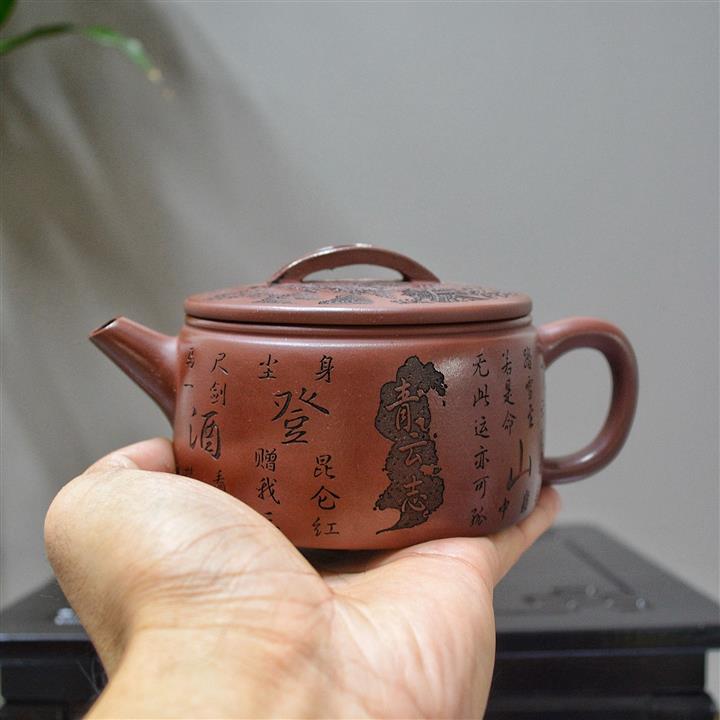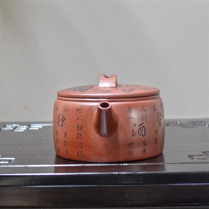 原礦大紅袍五福圖漢瓦茶壺POT7610
