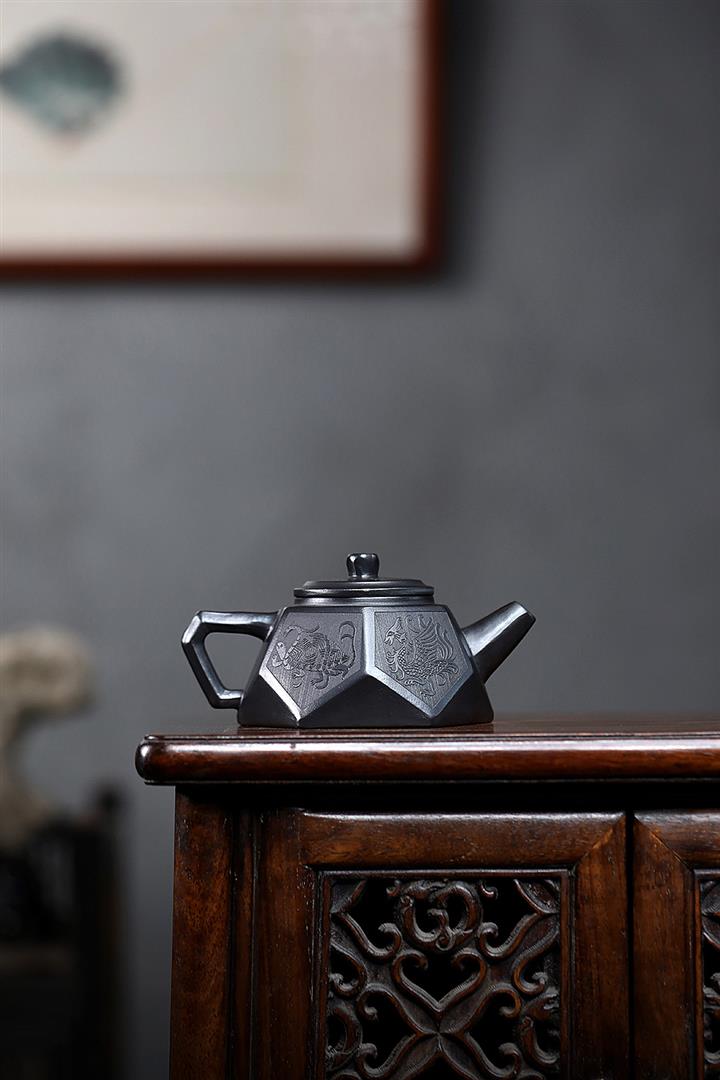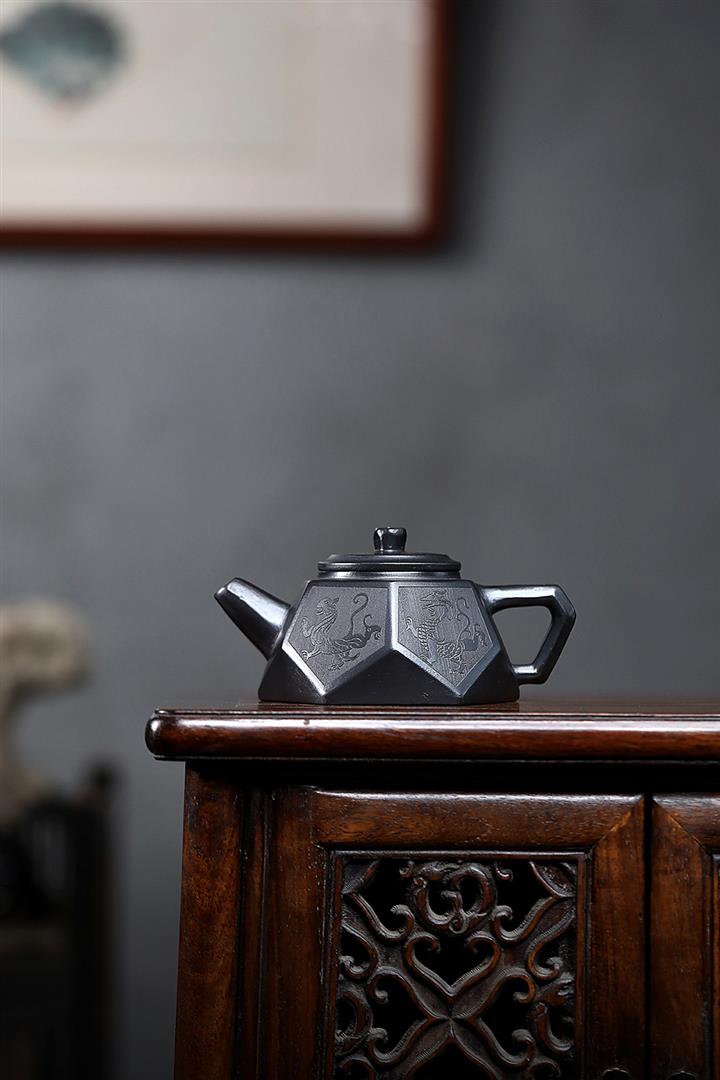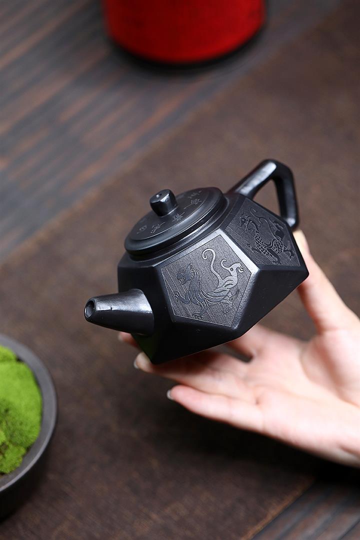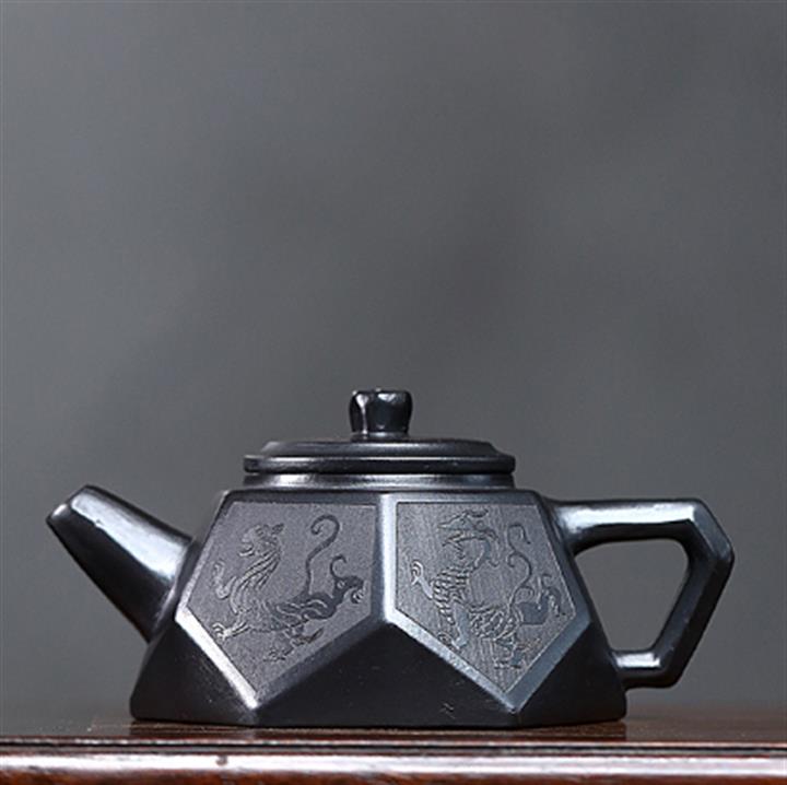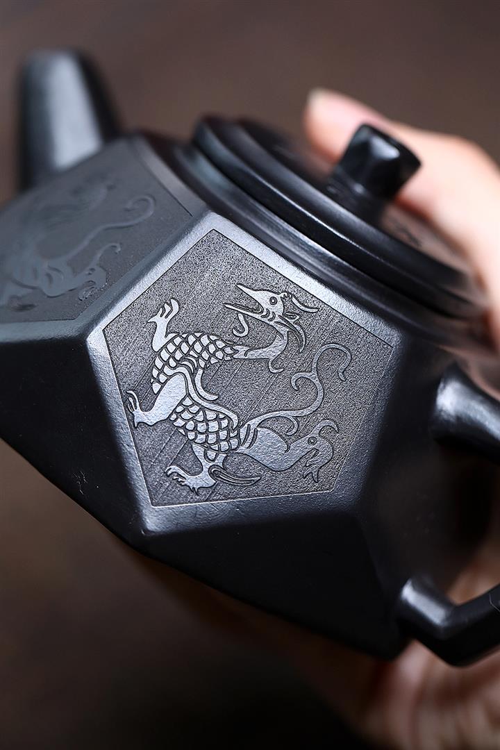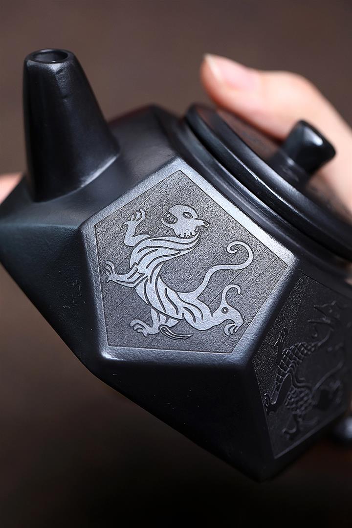 220cc原礦黑泥神獸鉆石茶壺POT8675