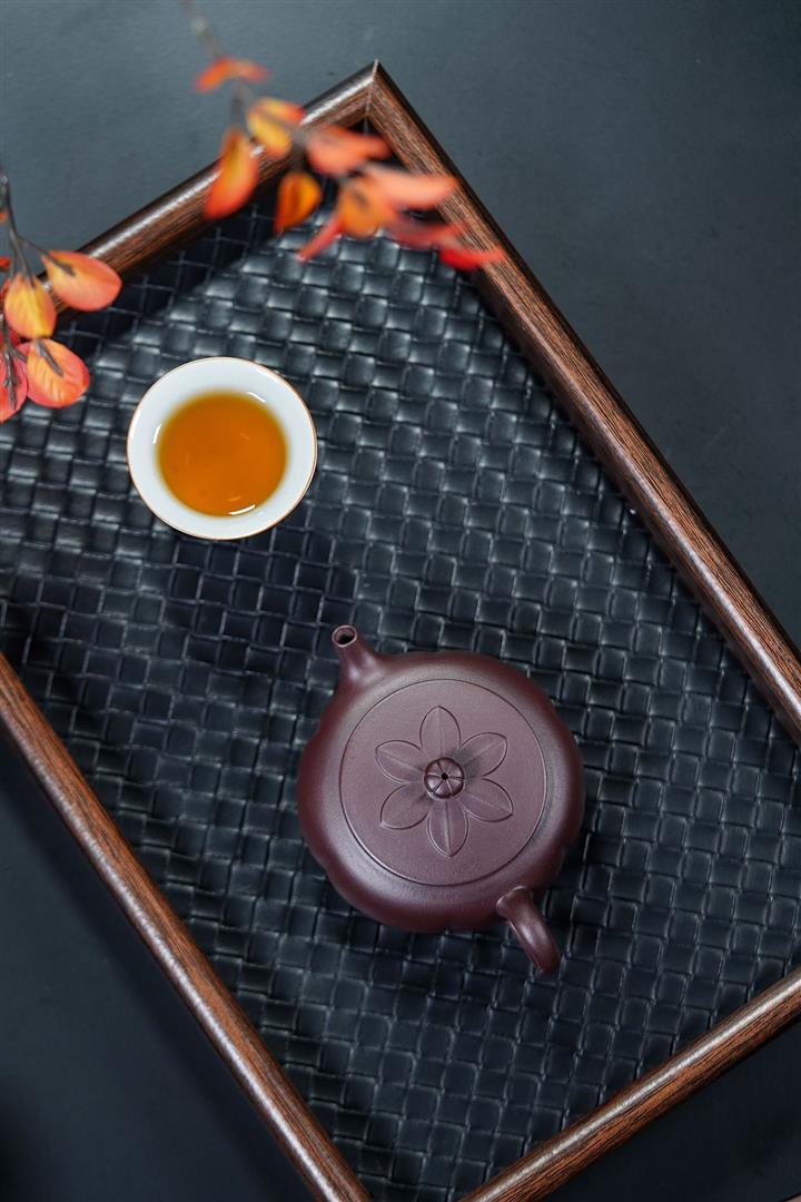 手工紫砂壺證書雙鳳賜福原礦老紫泥POT3633
