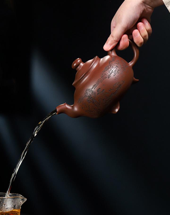 【泥料特點】砂土氣重,似淳實農民,日久使用,漸露鋒芒,養成變化,溫潤莊重。紫砂是壹種雙重氣孔結構的多孔性材質,氣孔微細,密度高。用紫砂壺沏茶,不失原味,且香不渙散,得茶之真香真味。紫砂使用越久,壺身色澤越發光亮照人,氣韻溫雅。紫砂壺長久使用器身會因撫摸擦拭,變得越發溫潤光澤。