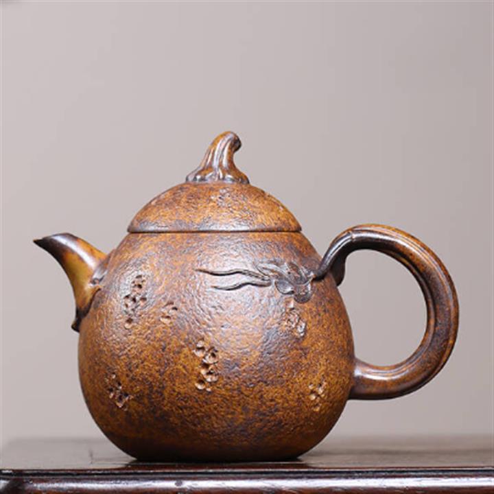 220cc原礦 大紅袍還原燒堆繪金梅花牛蓋茶壺POT9030