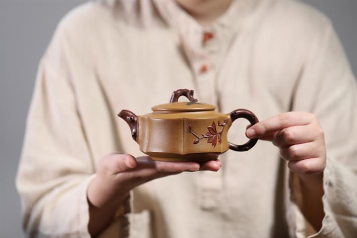 【泥料特點】砂土氣重,似淳實農民,日久使用,漸露鋒芒,養成變化,溫潤莊重。紫砂是壹種雙重氣孔結構的多孔性材質,氣孔微細,密度高。用紫砂壺沏茶,不失原味,且香不渙散,得茶之真香真味。紫砂使用越久,壺身色澤越發光亮照人,氣韻溫雅。紫砂壺長久使用器身會因撫摸擦拭,變得越發溫潤光澤。