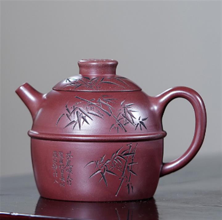 【泥料特點】砂土氣重,似淳實農民,日久使用,漸露鋒芒,養成變化,溫潤莊重。紫砂是壹種雙重氣孔結構的多孔性材質,氣孔微細,密度高。用紫砂壺沏茶,不失原味,且香不渙散,得茶之真香真味。紫砂使用越久,壺身色澤越發光亮照人,氣韻溫雅。紫砂壺長久使用器身會因撫摸擦拭,變得越發溫潤光澤。