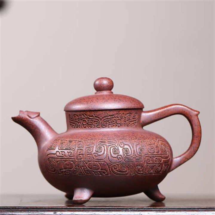 600cc原礦石紅泥松鶴延年秦權茶壺POT9020