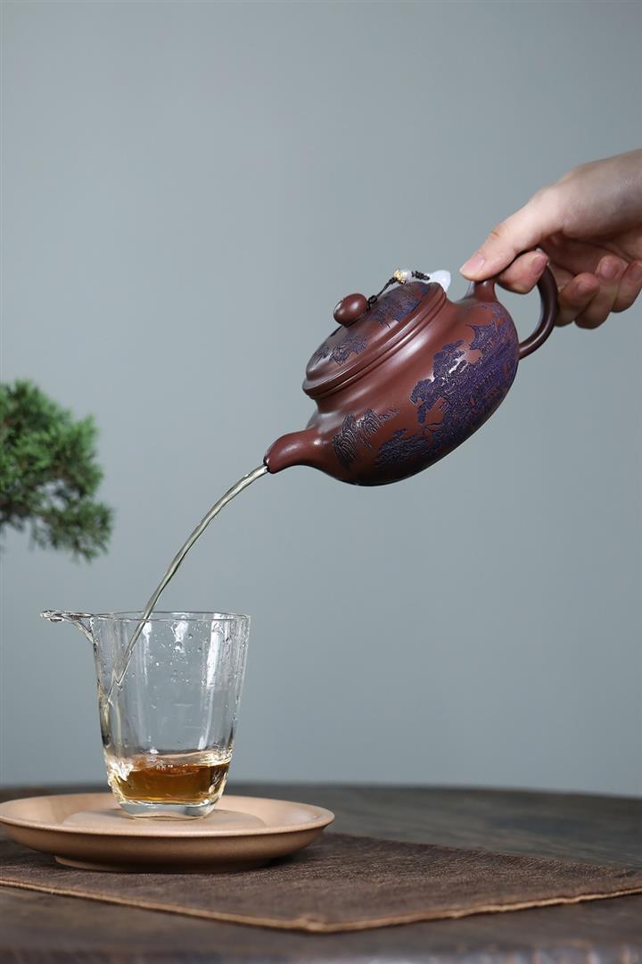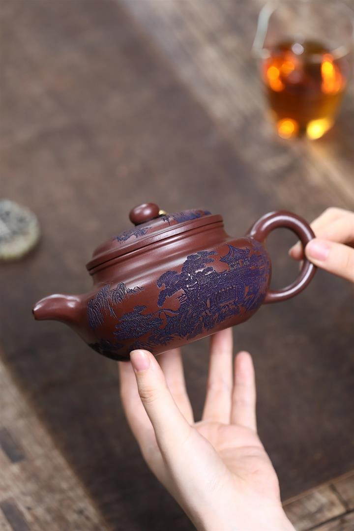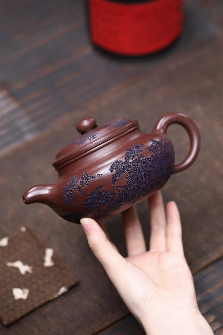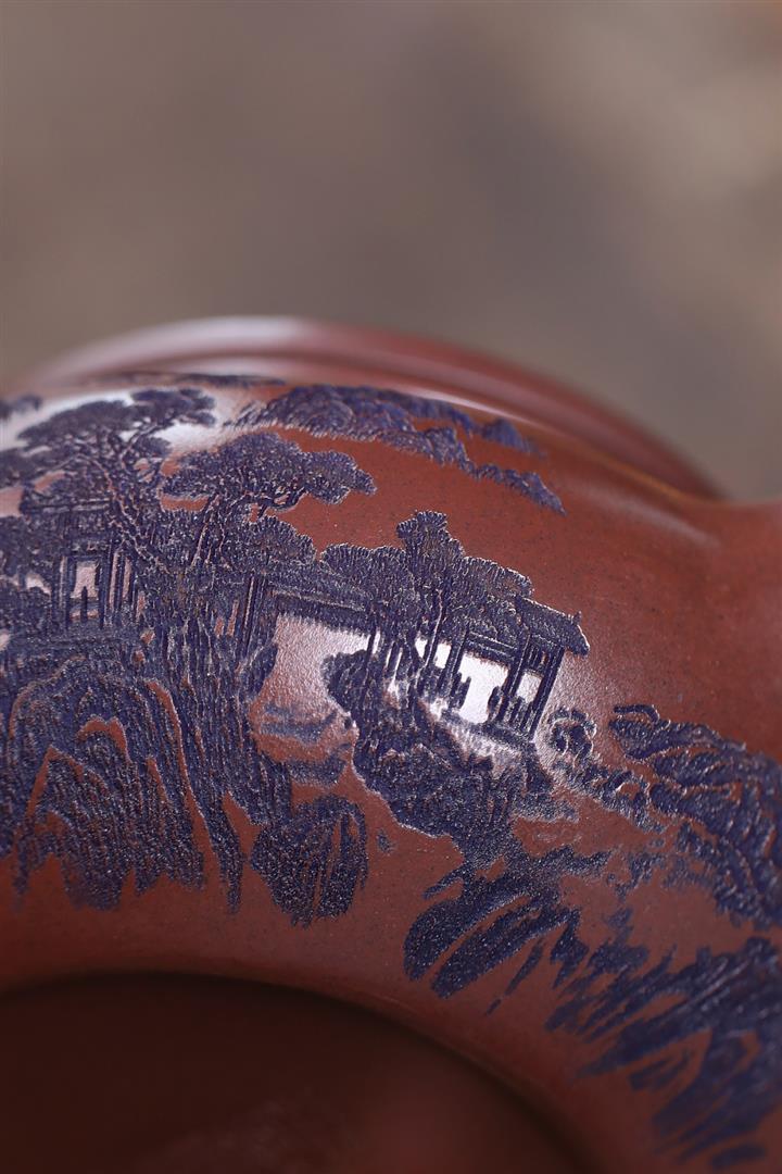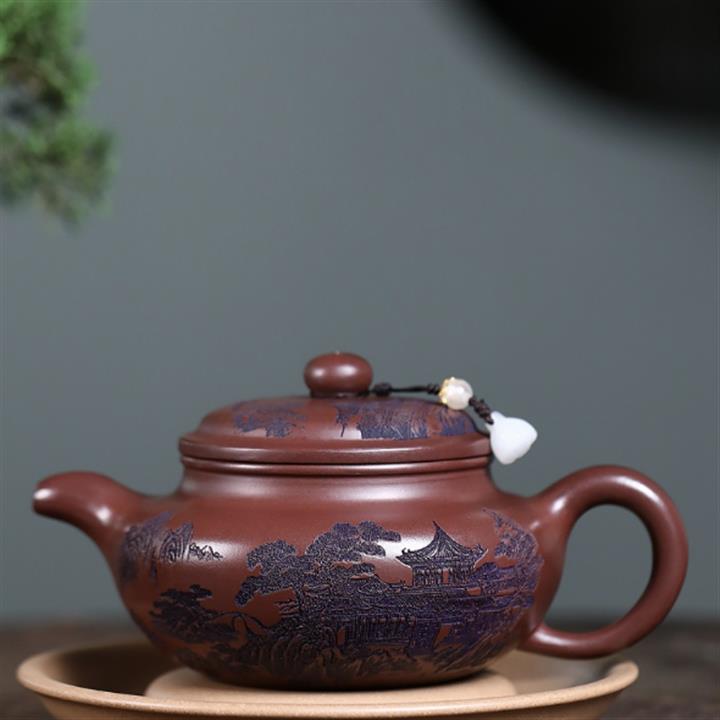 原礦鐵血紅砂刻字寒江茶壺POT7627