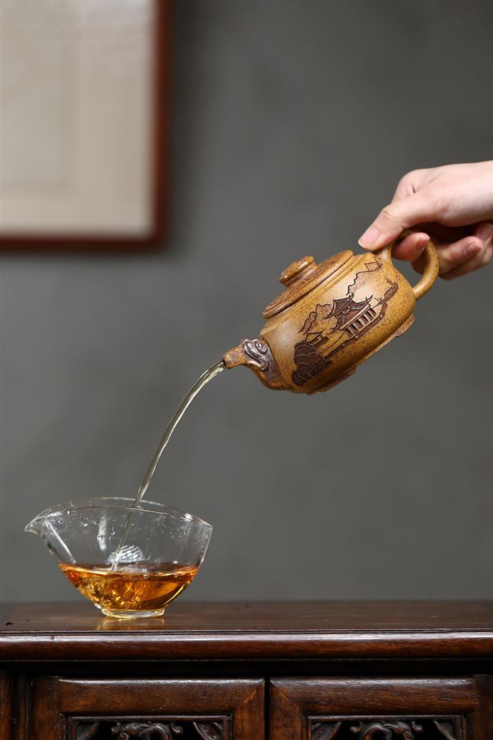 【泥料特點】砂土氣重,似淳實農民,日久使用,漸露鋒芒,養成變化,溫潤莊重。紫砂是壹種雙重氣孔結構的多孔性材質,氣孔微細,密度高。用紫砂壺沏茶,不失原味,且香不渙散,得茶之真香真味。紫砂使用越久,壺身色澤越發光亮照人,氣韻溫雅。紫砂壺長久使用器身會因撫摸擦拭,變得越發溫潤光澤。