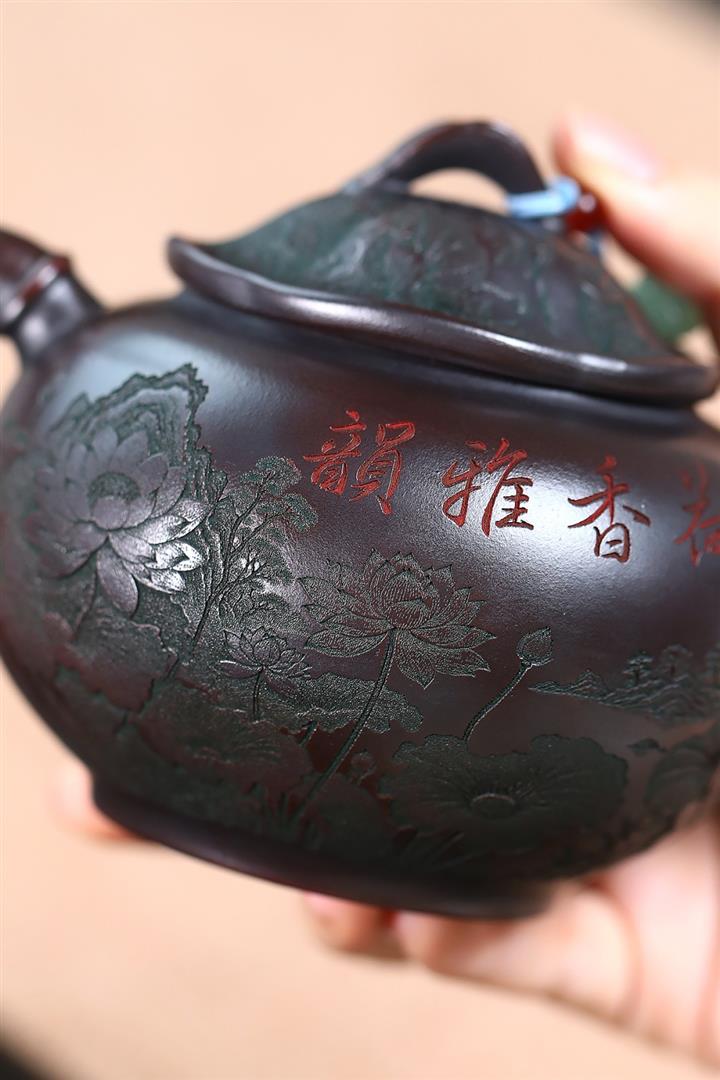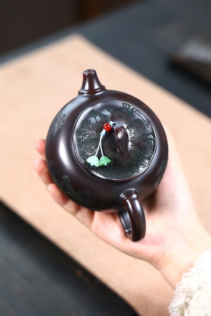 【作品介紹】此款壺形線條流暢,壺把,壺嘴,壺身壹氣呵成栩栩如生,是收藏把玩的好壺,泥料色澤古樸典雅,日久使用,漸露鋒芒,養成變化快,溫潤莊重,用其泡茶,使用的年代久,壺身就溫潤,泡出來的茶湯也就醇郁芳馨。
