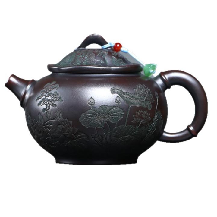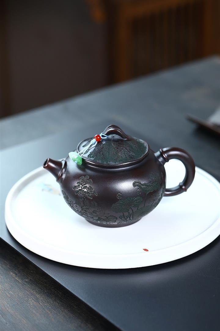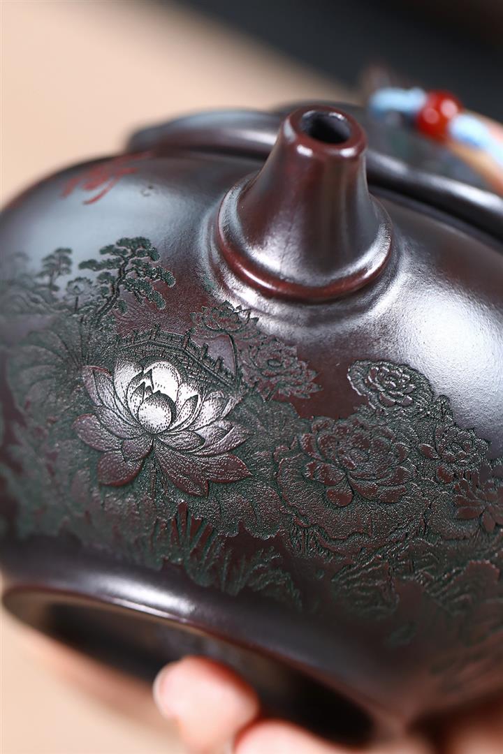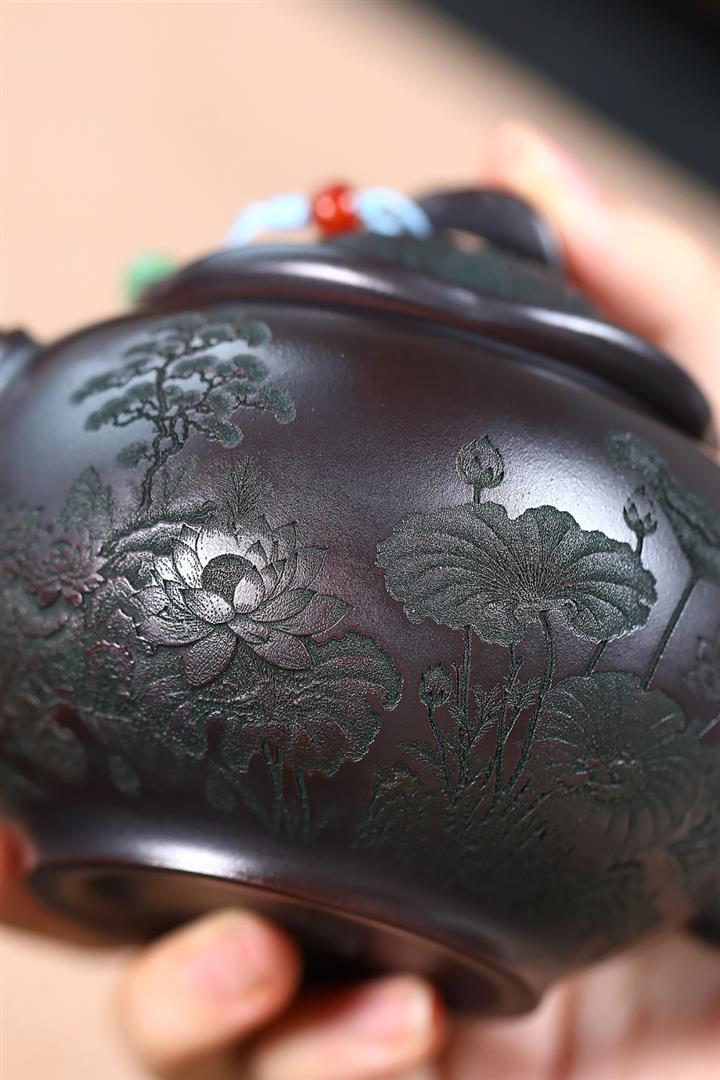 盤龍竹段原礦石黃黑料手刻紫砂壺工堂源頭禮品茶具壺pot3779