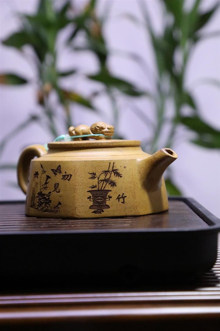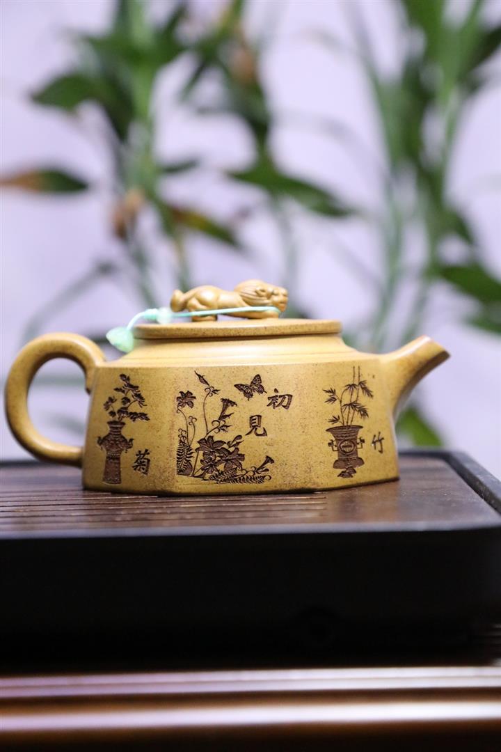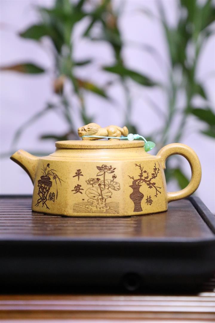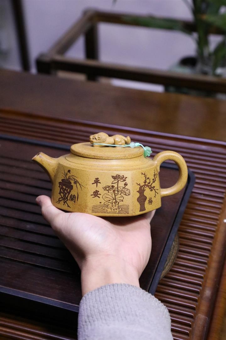 【作品介紹】此款壺形線條流暢,壺把,壺嘴,壺身壹氣呵成栩栩如生,是收藏把玩的好壺,泥料色澤古樸典雅,日久使用,漸露鋒芒,養成變化快,溫潤莊重,用其泡茶,使用的年代久,壺身就溫潤,泡出來的茶湯也就醇郁芳馨。