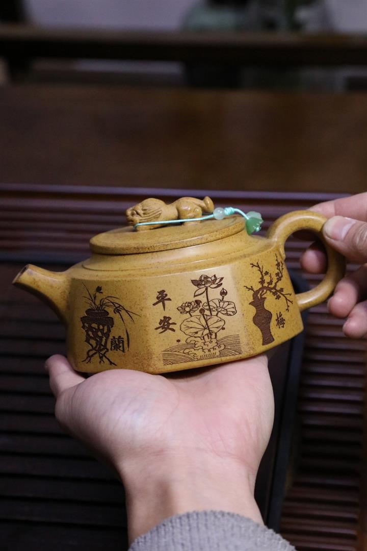 原礦赤龍血砂魚趣六方宮燈茶壺POT7555