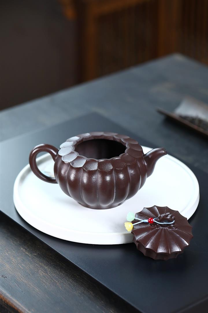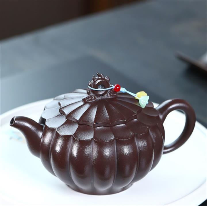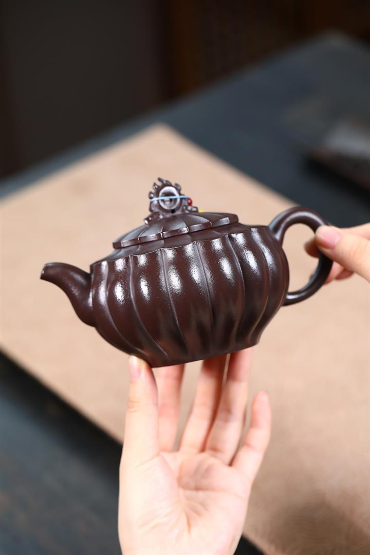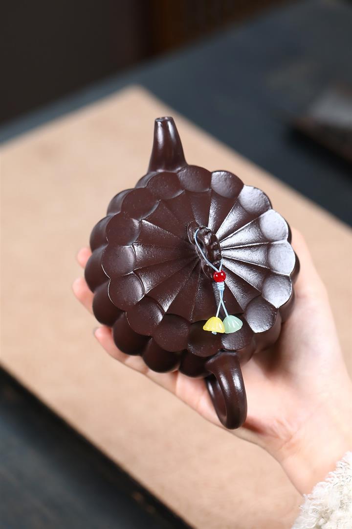350cc原礦紫泥筋紋葵菱茶壺POT8733