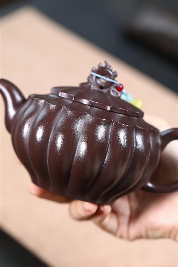 【作品介紹】此款壺形線條流暢,壺把,壺嘴,壺身壹氣呵成栩栩如生,是收藏把玩的好壺,泥料色澤古樸典雅,日久使用,漸露鋒芒,養成變化快,溫潤莊重,用其泡茶,使用的年代久,壺身就溫潤,泡出來的茶湯也就醇郁芳馨。