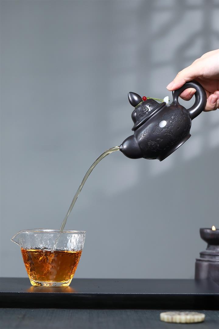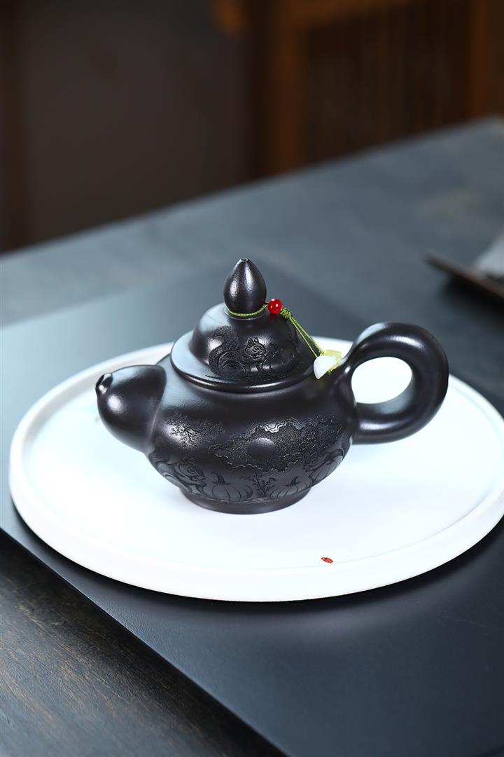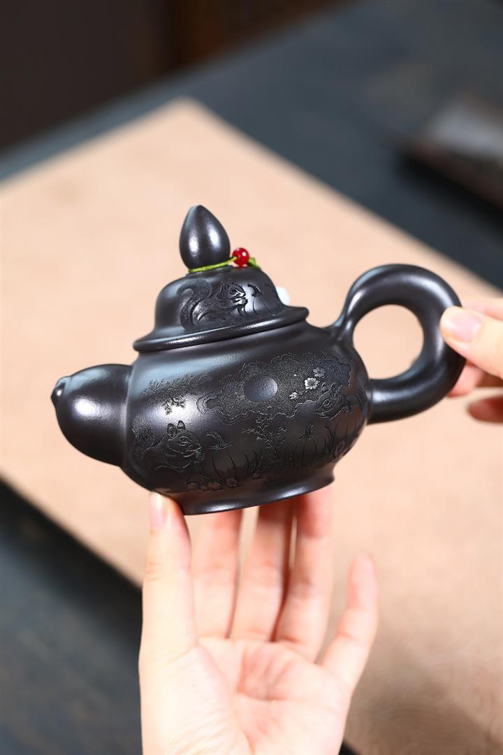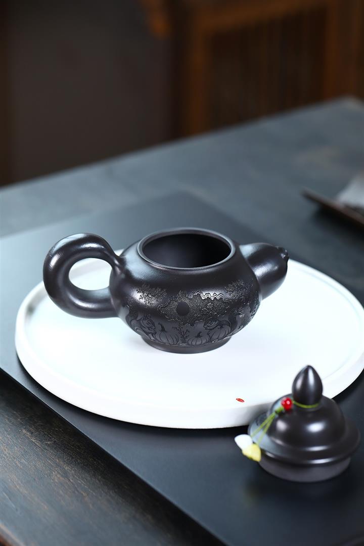 【作品介紹】此款壺形線條流暢,壺把,壺嘴,壺身壹氣呵成栩栩如生,是收藏把玩的好壺,泥料色澤古樸典雅,日久使用,漸露鋒芒,養成變化快,溫潤莊重,用其泡茶,使用的年代久,壺身就溫潤,泡出來的茶湯也就醇郁芳馨。