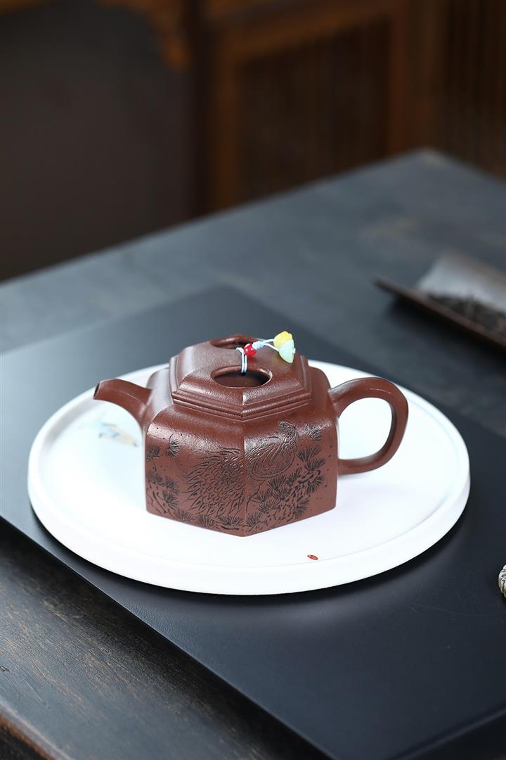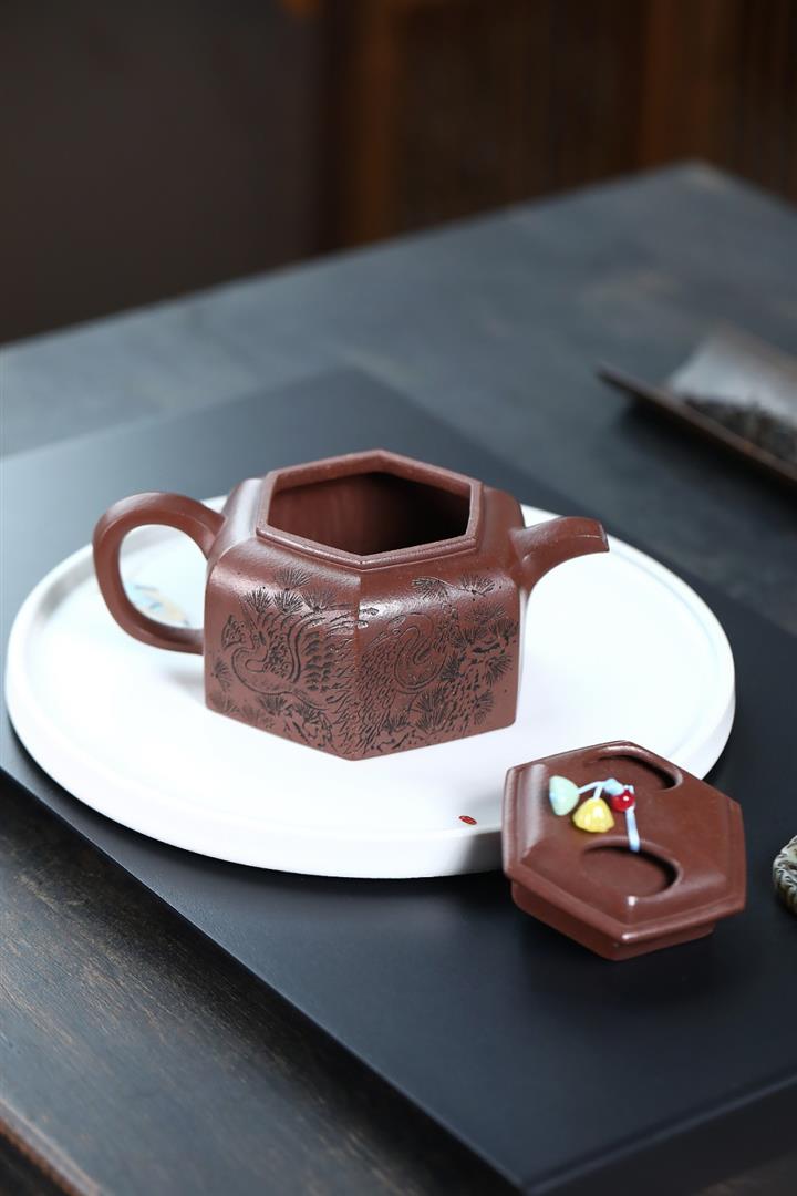 【泥料特點】砂土氣重,似淳實農民,日久使用,漸露鋒芒,養成變化,溫潤莊重。紫砂是壹種雙重氣孔結構的多孔性材質,氣孔微細,密度高。用紫砂壺沏茶,不失原味,且香不渙散,得茶之真香真味。紫砂使用越久,壺身色澤越發光亮照人,氣韻溫雅。紫砂壺長久使用器身會因撫摸擦拭,變得越發溫潤光澤。