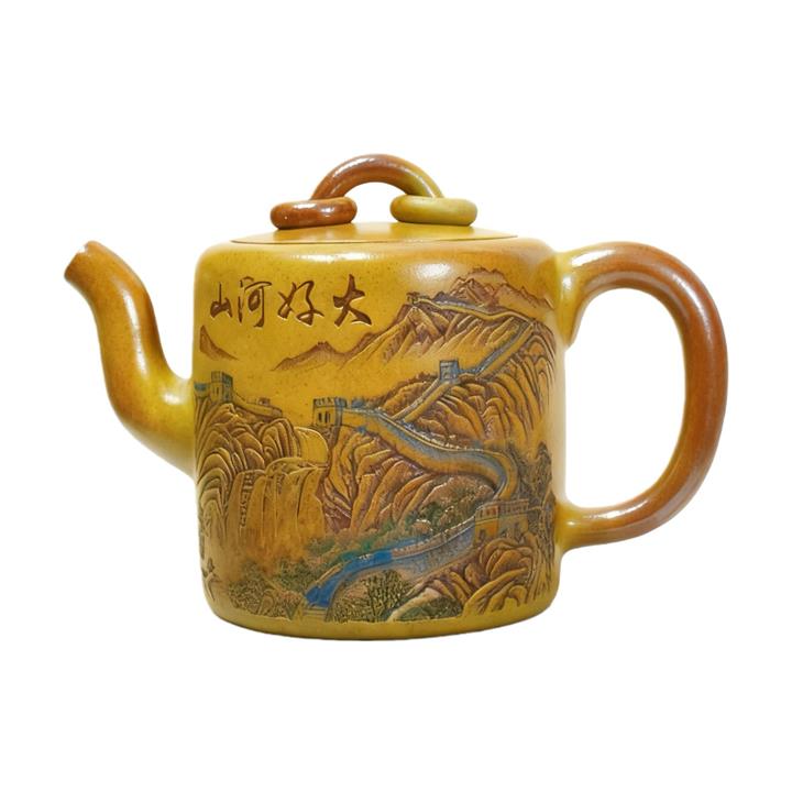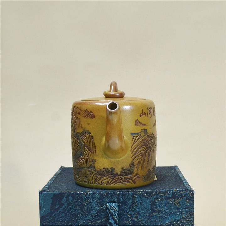 270cc原礦玄鐵石黃荷韻井欄泡茶壺POT8659