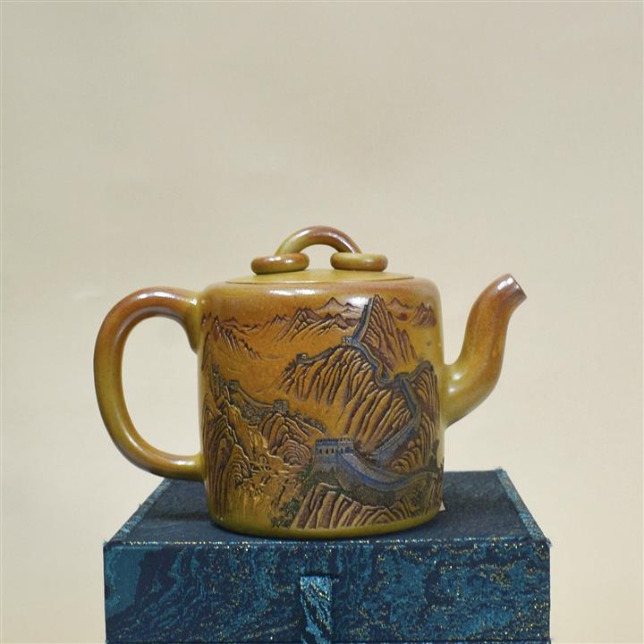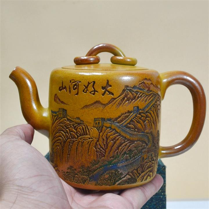 【作品介紹】此款壺形線條流暢,壺把,壺嘴,壺身壹氣呵成栩栩如生,是收藏把玩的好壺,泥料色澤古樸典雅,日久使用,漸露鋒芒,養成變化快,溫潤莊重,用其泡茶,使用的年代久,壺身就溫潤,泡出來的茶湯也就醇郁芳馨。