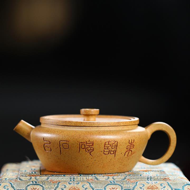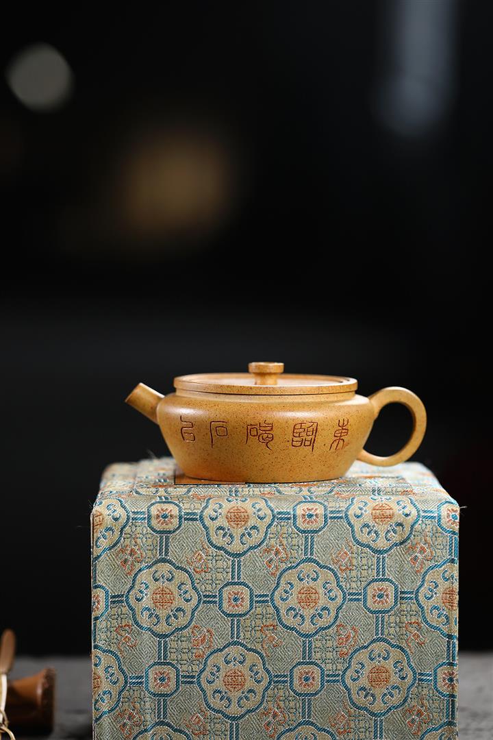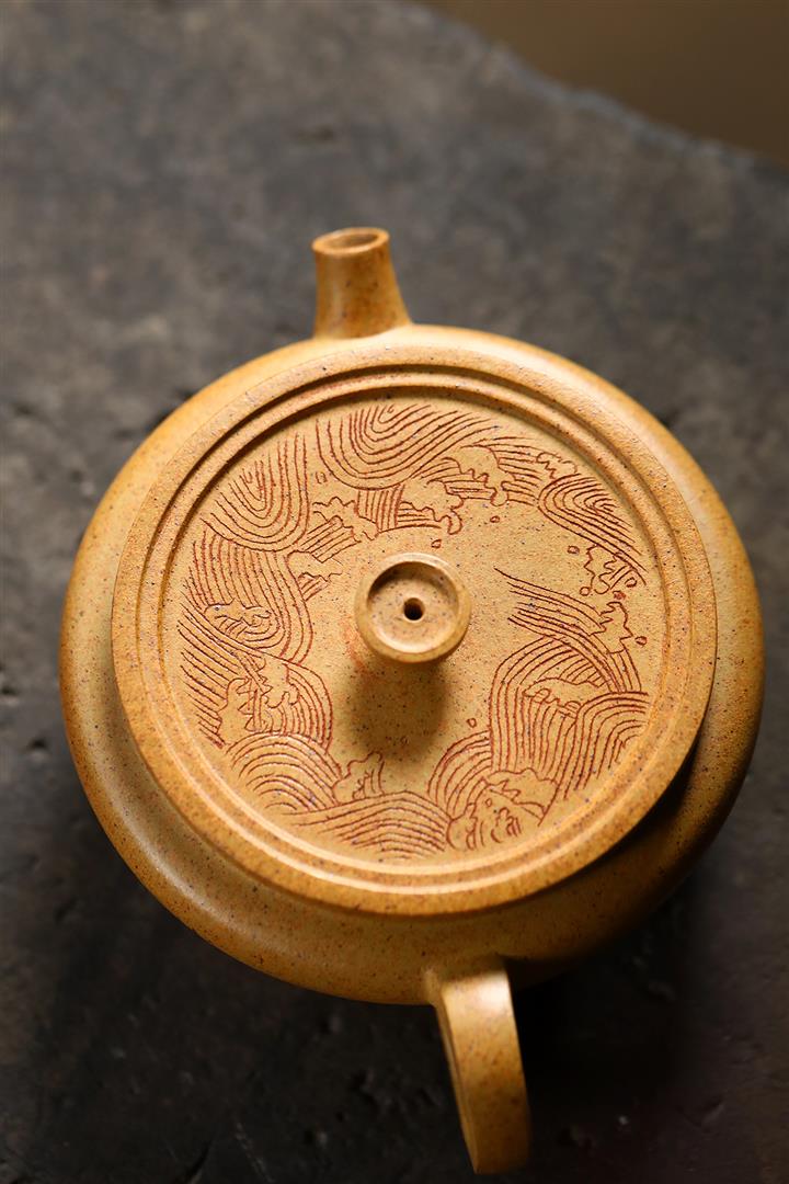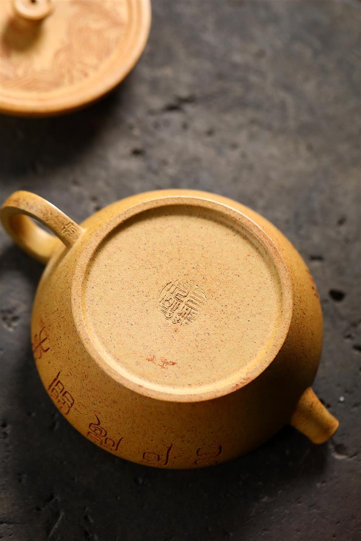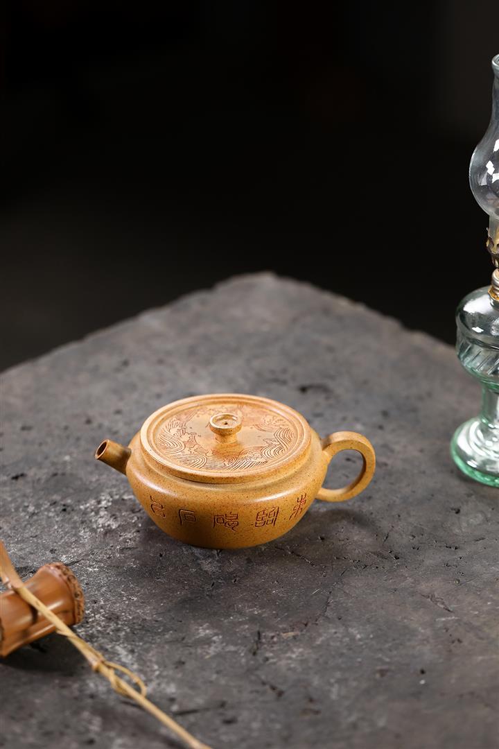 290cc玄鐵石黃黑料金刻龍馬精神茶壺POT8189