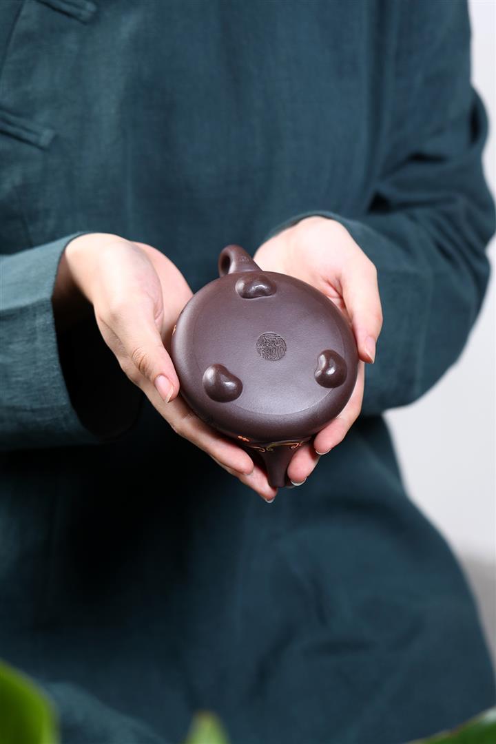 【泥料特點】砂土氣重,似淳實農民,日久使用,漸露鋒芒,養成變化,溫潤莊重。紫砂是壹種雙重氣孔結構的多孔性材質,氣孔微細,密度高。用紫砂壺沏茶,不失原味,且香不渙散,得茶之真香真味。紫砂使用越久,壺身色澤越發光亮照人,氣韻溫雅。紫砂壺長久使用器身會因撫摸擦拭,變得越發溫潤光澤。
