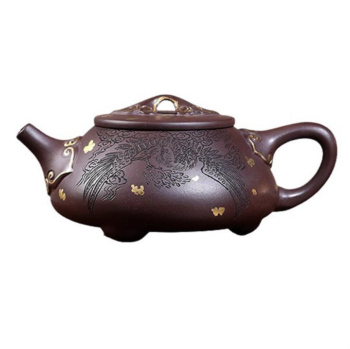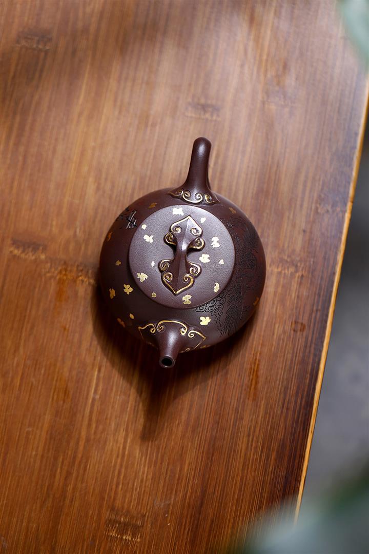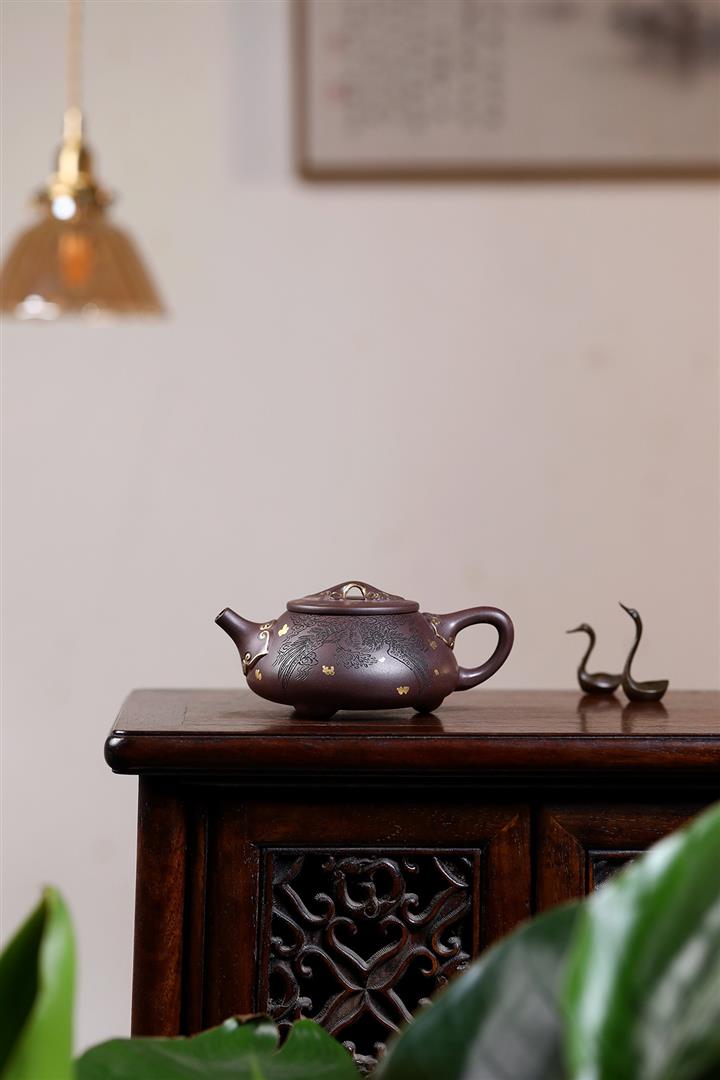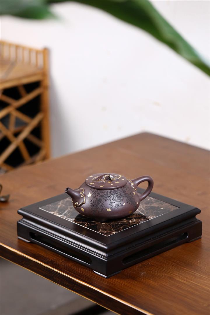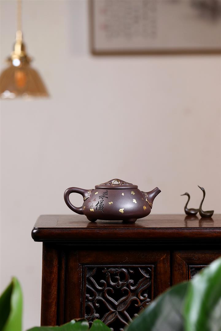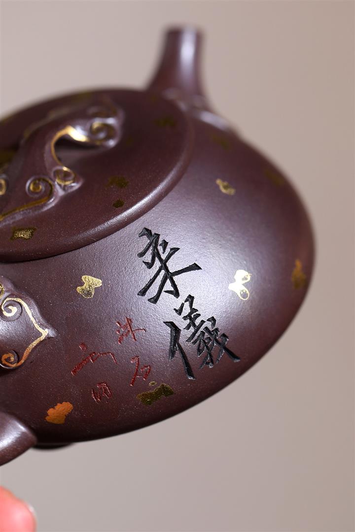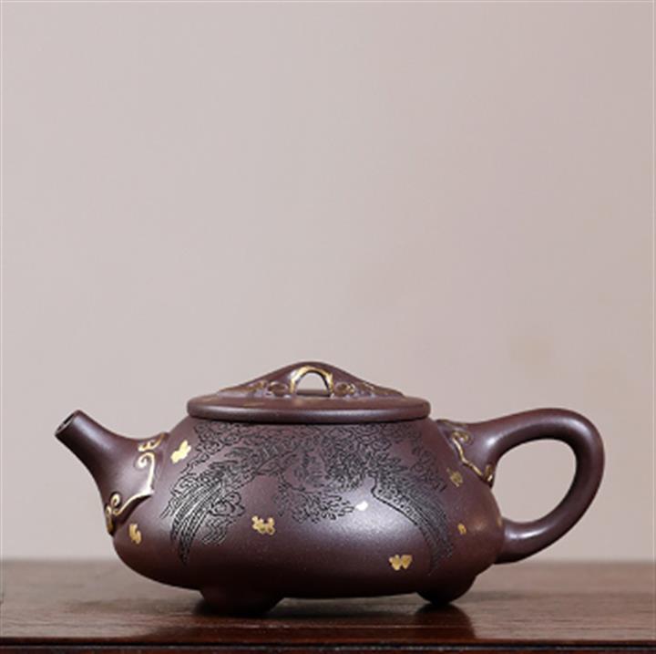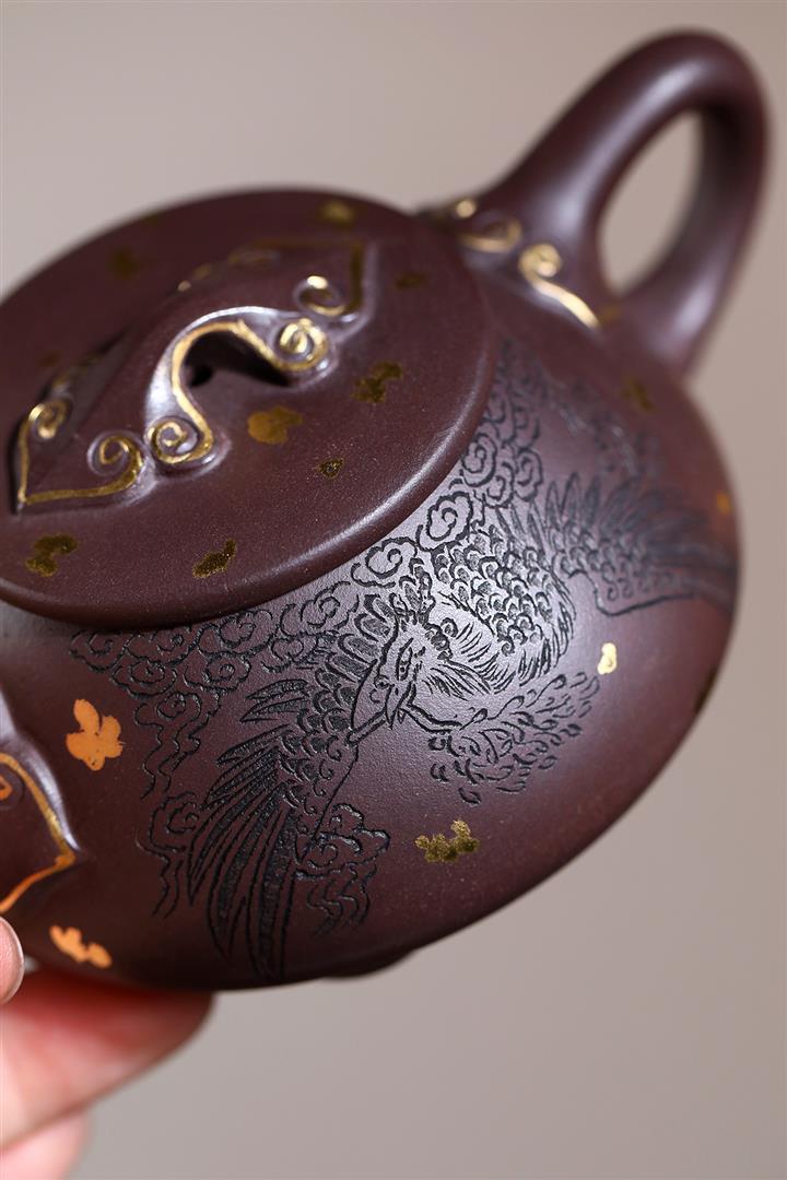 原礦紫泥刻繪石瓢紫砂壺POT4752