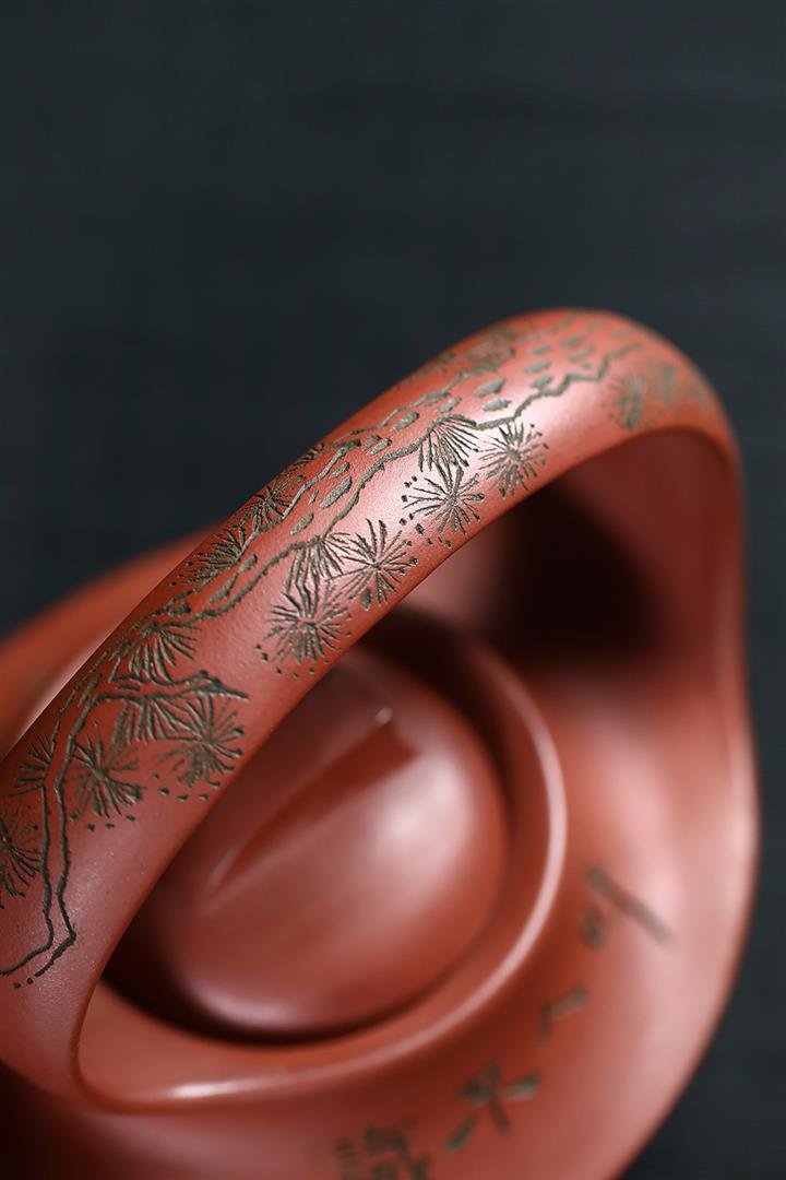 400cc原礦清水泥陶刻松影曲梁提梁茶壺POT8753