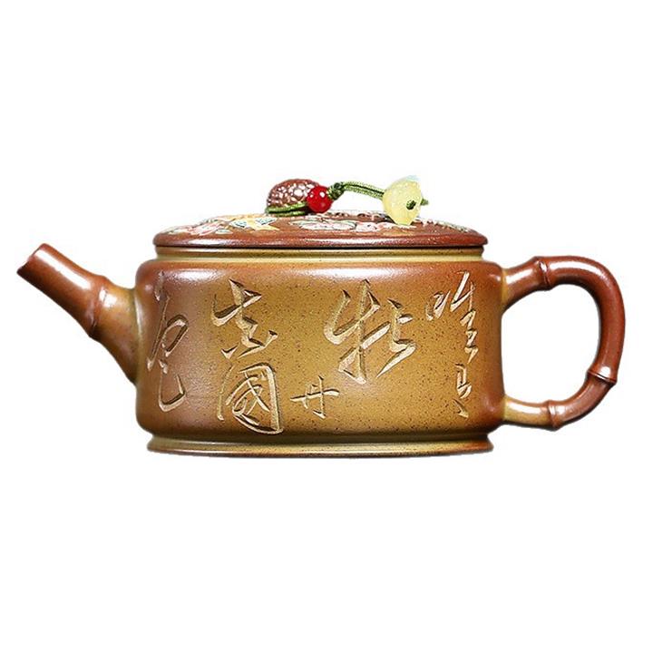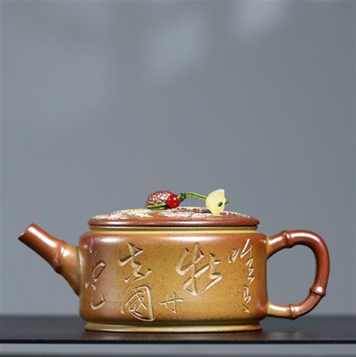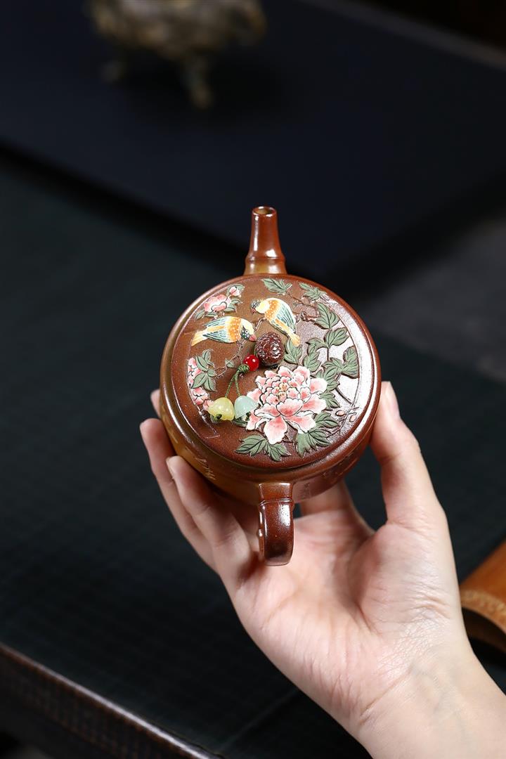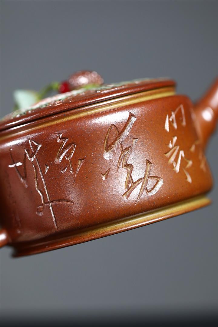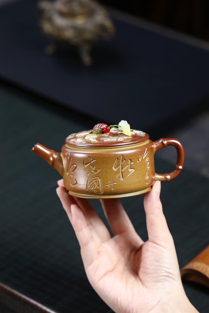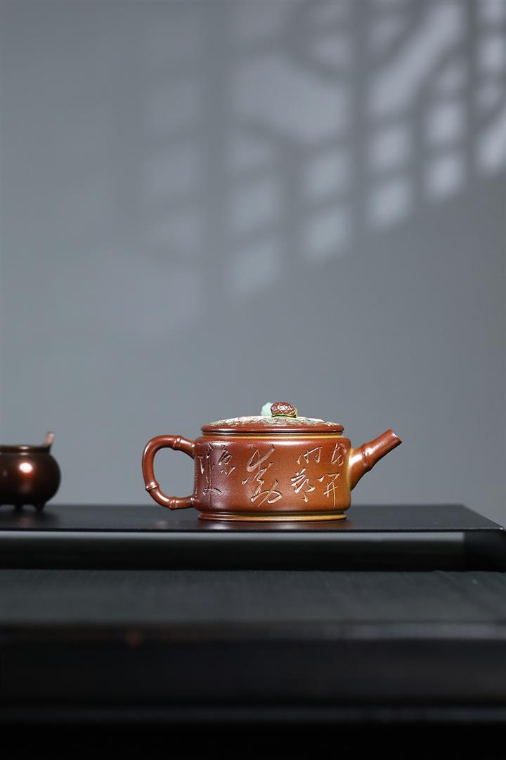捂灰朱泥琺瑯彩掇只茶壺POT7459