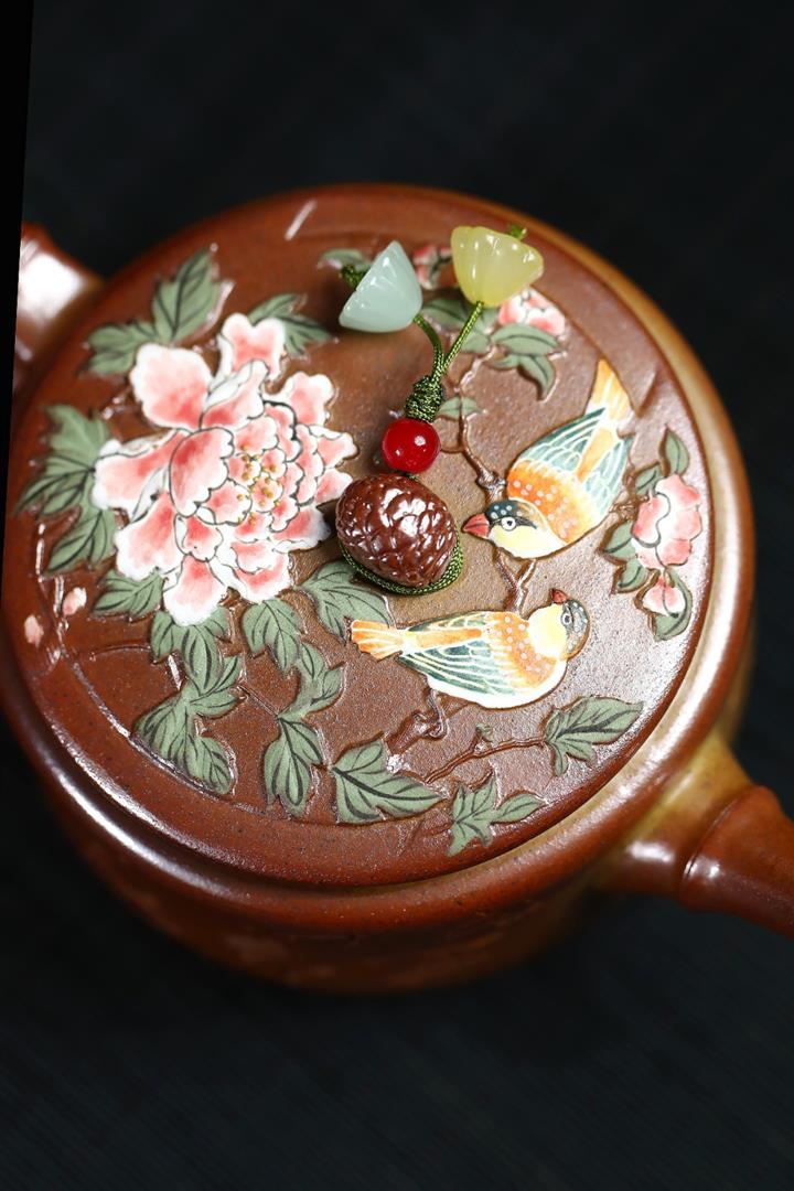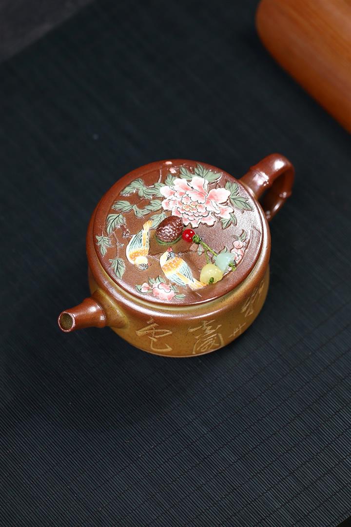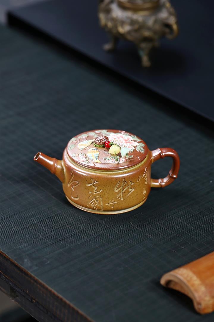 捂灰朱泥琺瑯彩燒曼殊茶壺POT7457