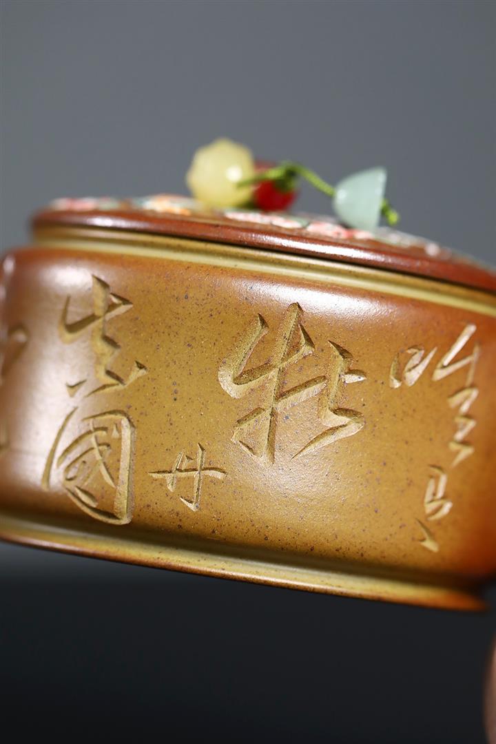 捂灰朱泥琺瑯彩燒虛扁茶壺POT7453