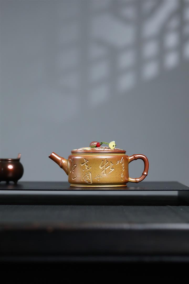捂灰朱泥琺瑯彩燒桑扁茶壺POT7456