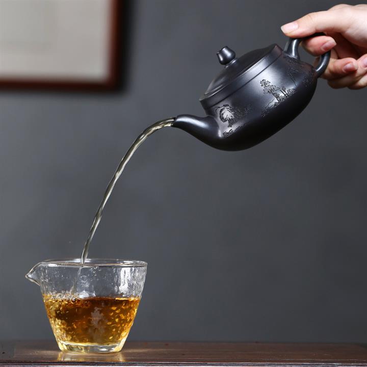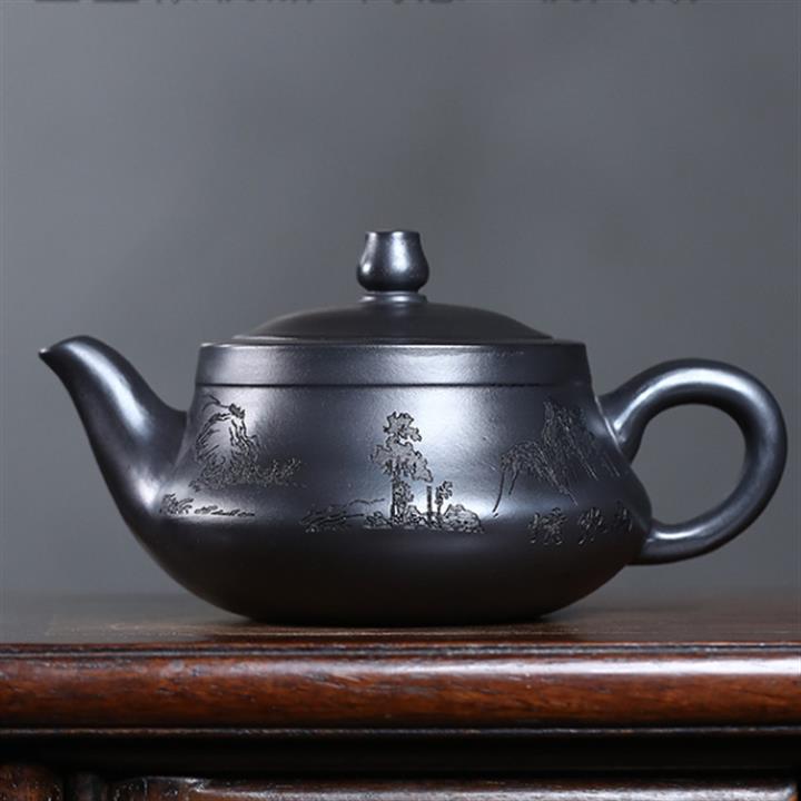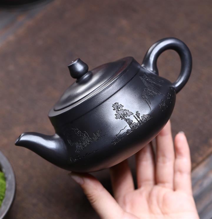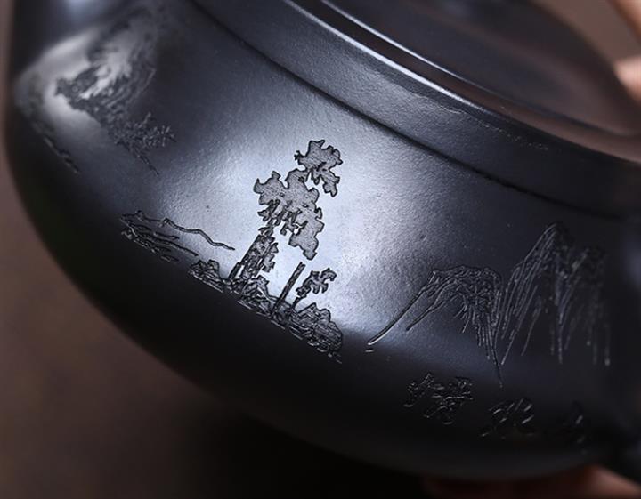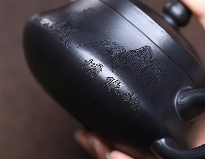 壬·原礦沈香泥百子圖提梁紫砂壺POT6447