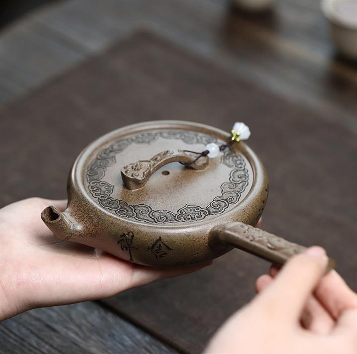 紫泥高溫柴燒漢瓦紫砂壺POT5526
