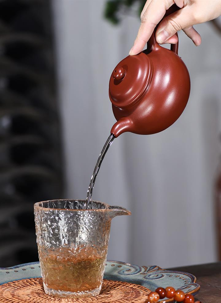 【泥料特點】砂土氣重,似淳實農民,日久使用,漸露鋒芒,養成變化,溫潤莊重。紫砂是壹種雙重氣孔結構的多孔性材質,氣孔微細,密度高。用紫砂壺沏茶,不失原味,且香不渙散,得茶之真香真味。紫砂使用越久,壺身色澤越發光亮照人,氣韻溫雅。紫砂壺長久使用器身會因撫摸擦拭,變得越發溫潤光澤。