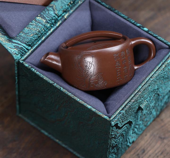 【泥料特點】砂土氣重,似淳實農民,日久使用,漸露鋒芒,養成變化,溫潤莊重。紫砂是壹種雙重氣孔結構的多孔性材質,氣孔微細,密度高。用紫砂壺沏茶,不失原味,且香不渙散,得茶之真香真味。紫砂使用越久,壺身色澤越發光亮照人,氣韻溫雅。紫砂壺長久使用器身會因撫摸擦拭,變得越發溫潤光澤。