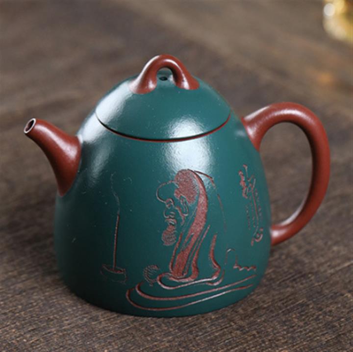170cc原礦紫泥綠泥粉漿復古秦權茶壺POT8602