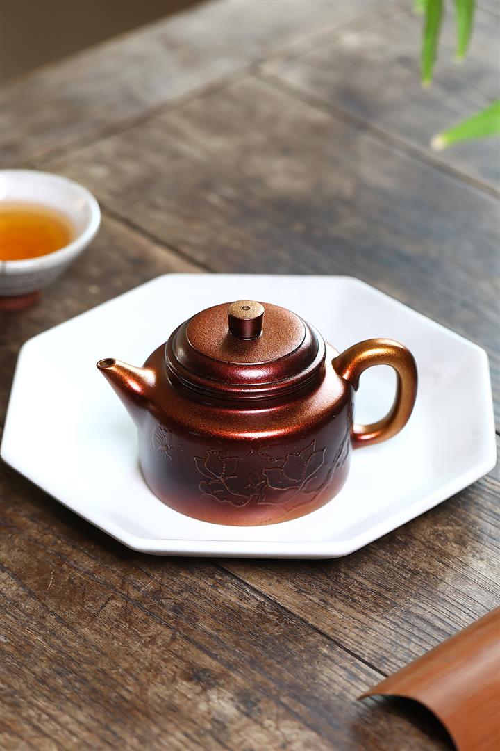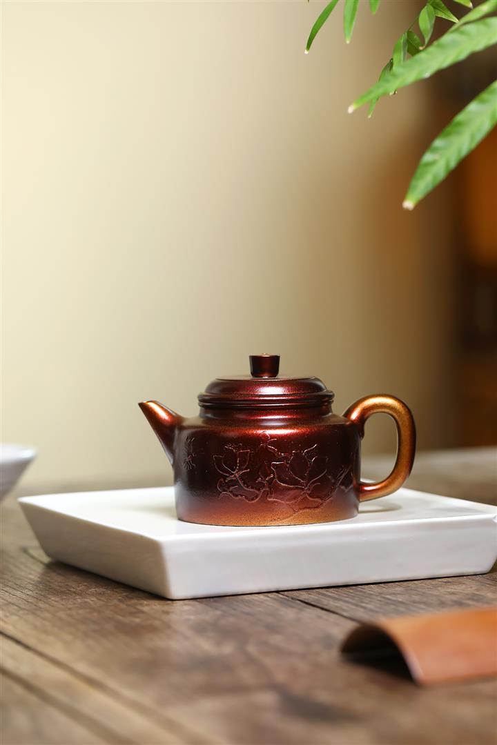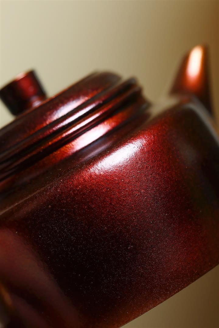 【泥料特點】砂土氣重,似淳實農民,日久使用,漸露鋒芒,養成變化,溫潤莊重。紫砂是壹種雙重氣孔結構的多孔性材質,氣孔微細,密度高。用紫砂壺沏茶,不失原味,且香不渙散,得茶之真香真味。紫砂使用越久,壺身色澤越發光亮照人,氣韻溫雅。紫砂壺長久使用器身會因撫摸擦拭,變得越發溫潤光澤。