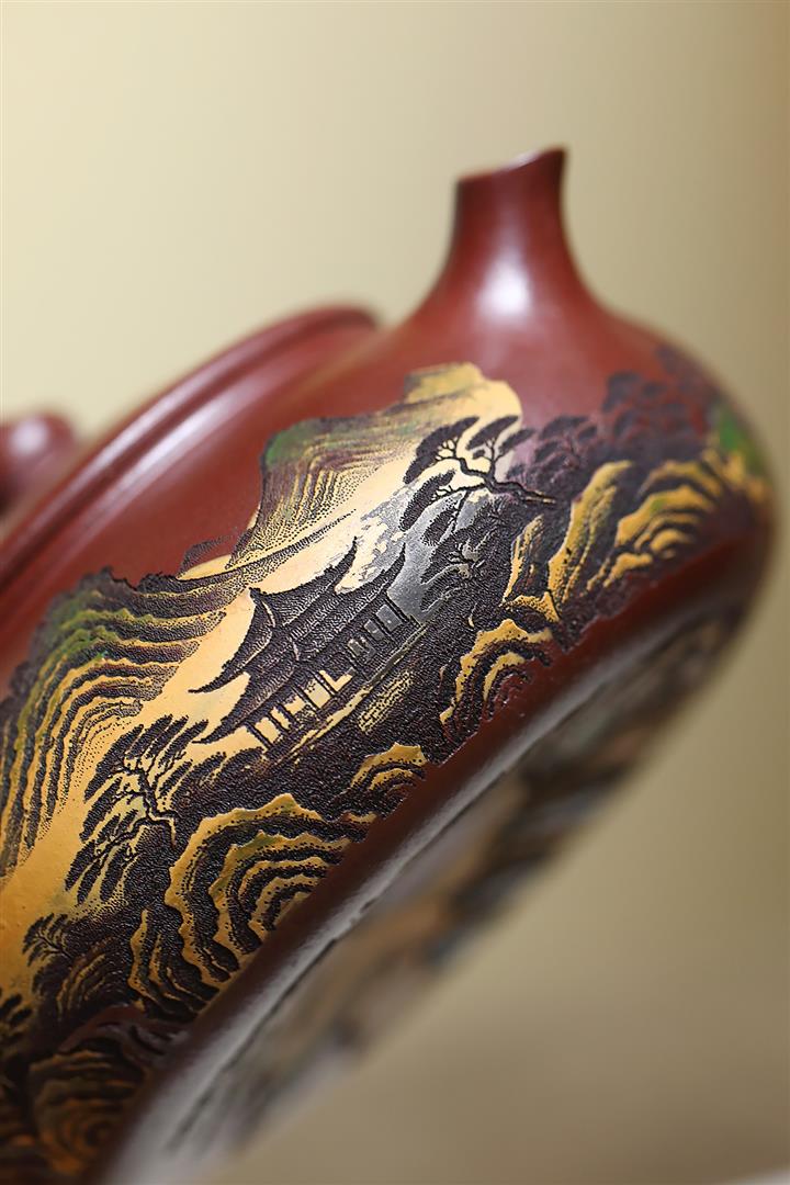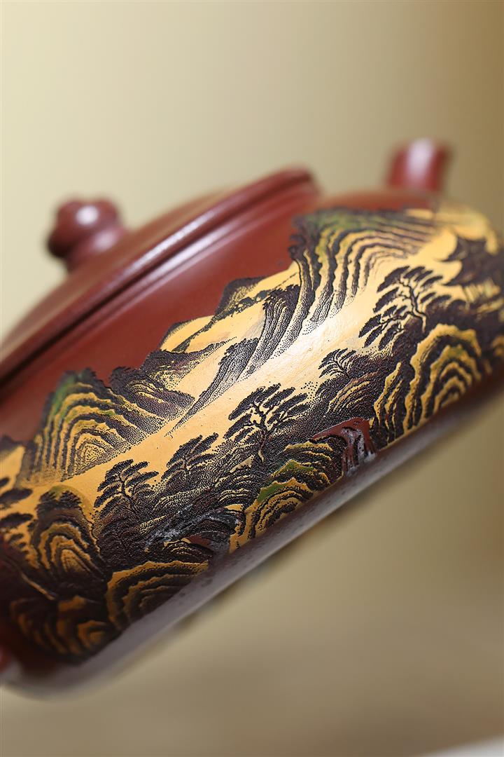 320cc原礦古烏泥萬裏長城彩刻伏虎茶壺POT8723
