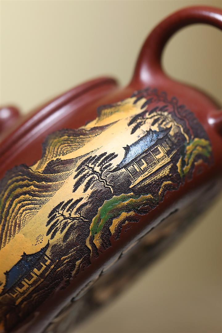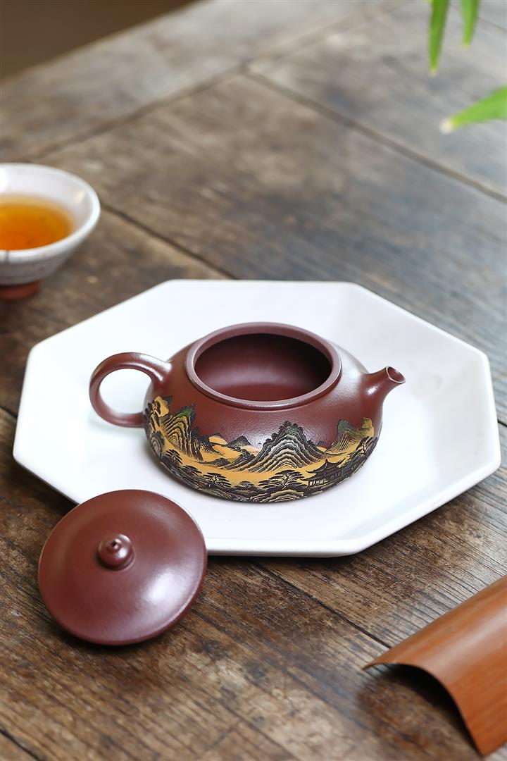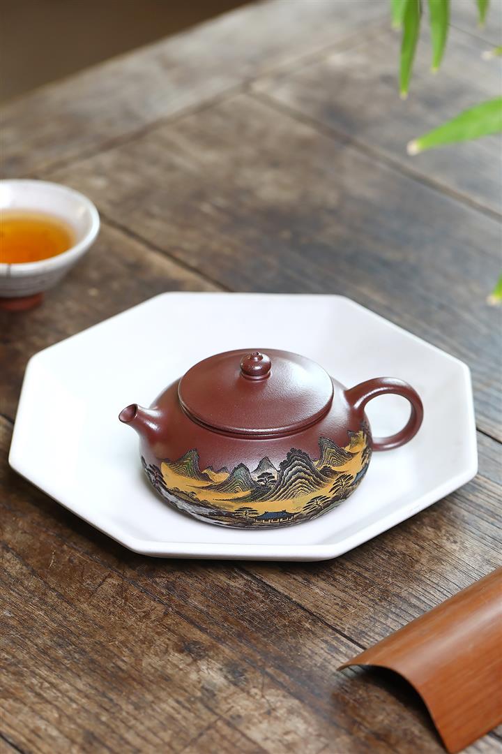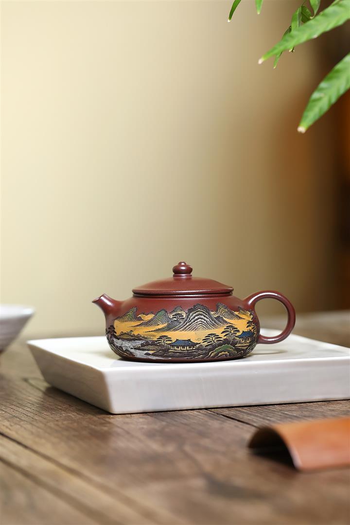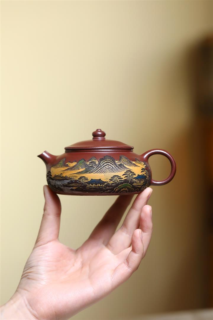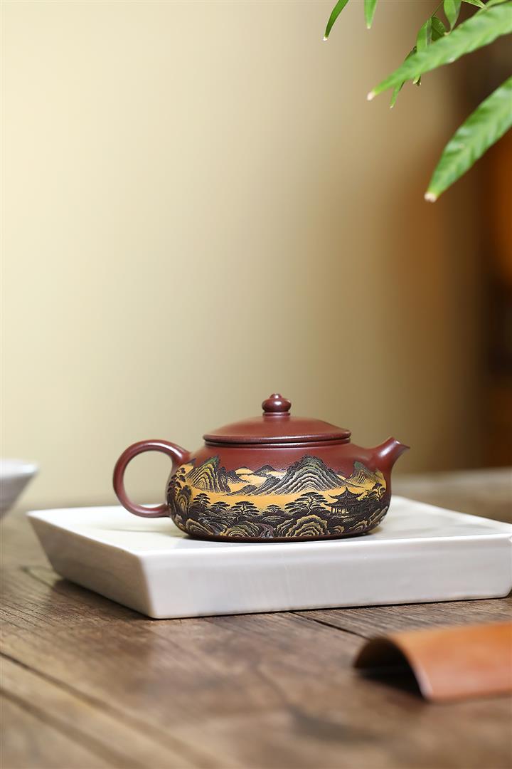 220cc原礦紫泥樓宇山川茶壺POT8841