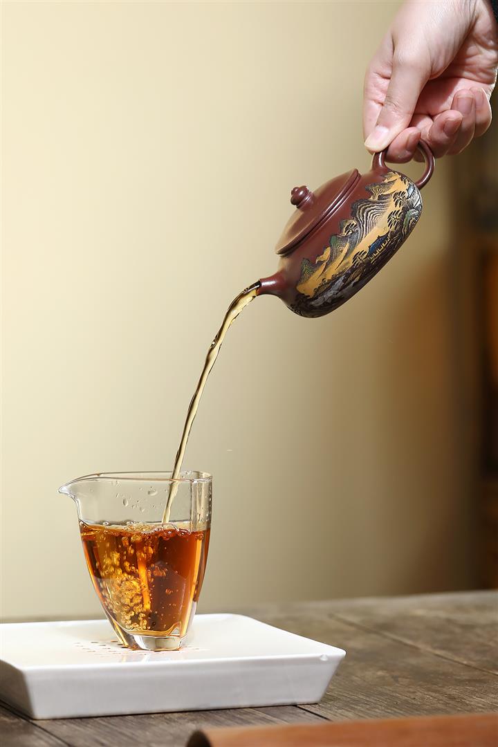 【泥料特點】砂土氣重,似淳實農民,日久使用,漸露鋒芒,養成變化,溫潤莊重。紫砂是壹種雙重氣孔結構的多孔性材質,氣孔微細,密度高。用紫砂壺沏茶,不失原味,且香不渙散,得茶之真香真味。紫砂使用越久,壺身色澤越發光亮照人,氣韻溫雅。紫砂壺長久使用器身會因撫摸擦拭,變得越發溫潤光澤。
