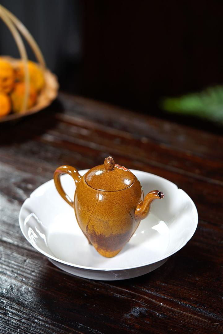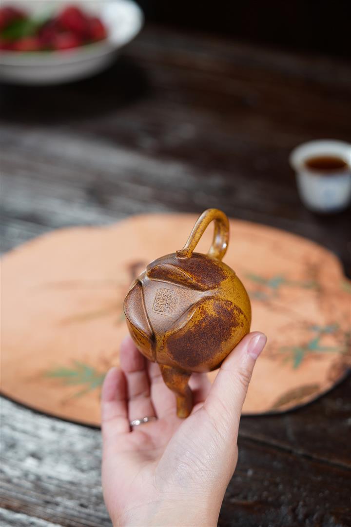 龍骨金砂荷葉美人肩紫砂壺POT5837