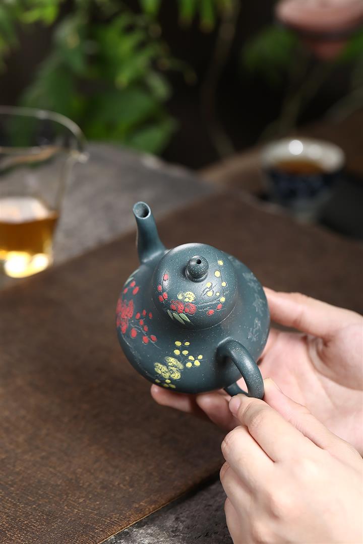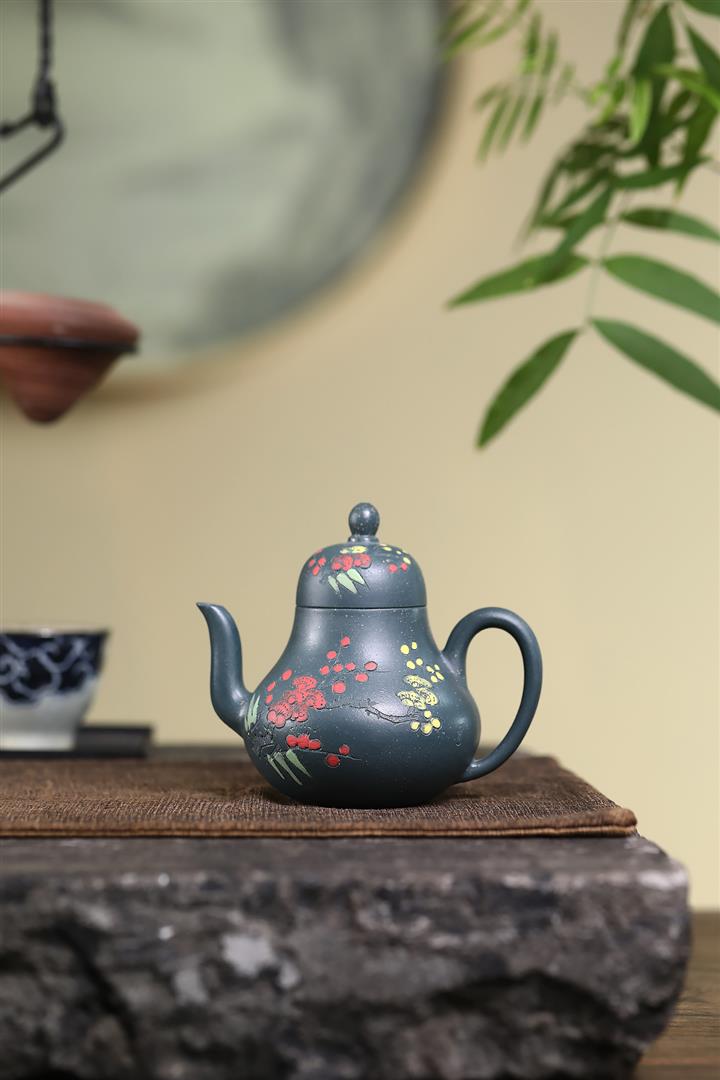 原礦翡翠綠泥金玉滿堂茶壺POT7019