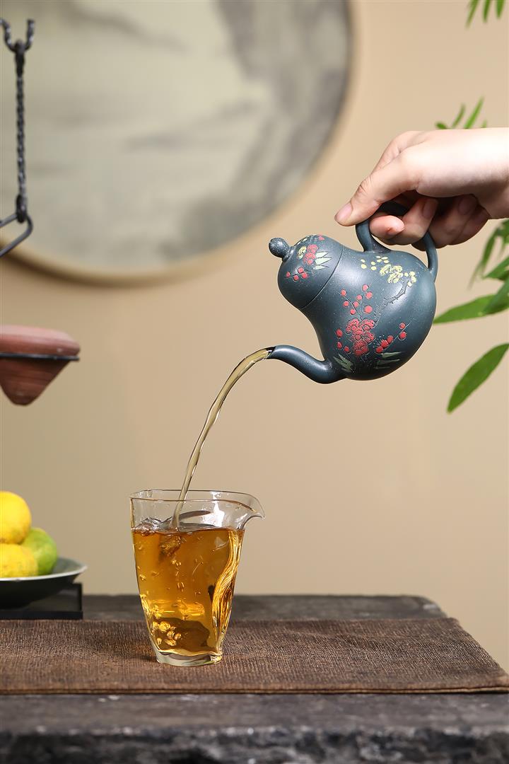 【泥料特點】砂土氣重,似淳實農民,日久使用,漸露鋒芒,養成變化,溫潤莊重。紫砂是壹種雙重氣孔結構的多孔性材質,氣孔微細,密度高。用紫砂壺沏茶,不失原味,且香不渙散,得茶之真香真味。紫砂使用越久,壺身色澤越發光亮照人,氣韻溫雅。紫砂壺長久使用器身會因撫摸擦拭,變得越發溫潤光澤。