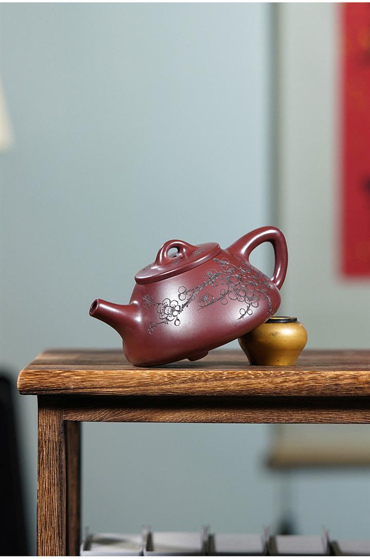 【作品介紹】此款壺形線條流暢,壺把,壺嘴,壺身壹氣呵成栩栩如生,是收藏把玩的好壺,泥料色澤古樸典雅,日久使用,漸露鋒芒,養成變化快,溫潤莊重,用其泡茶,使用的年代久,壺身就溫潤,泡出來的茶湯也就醇郁芳馨。