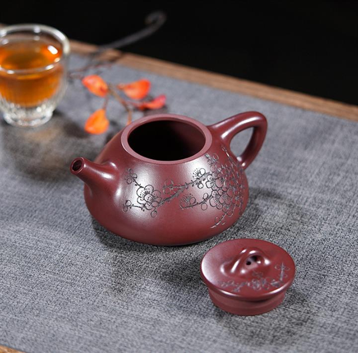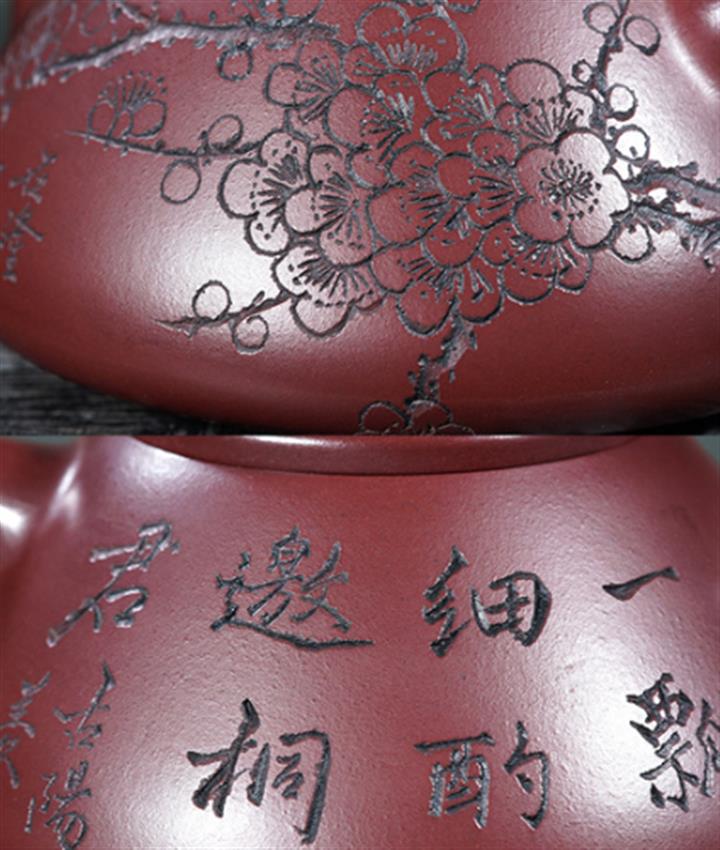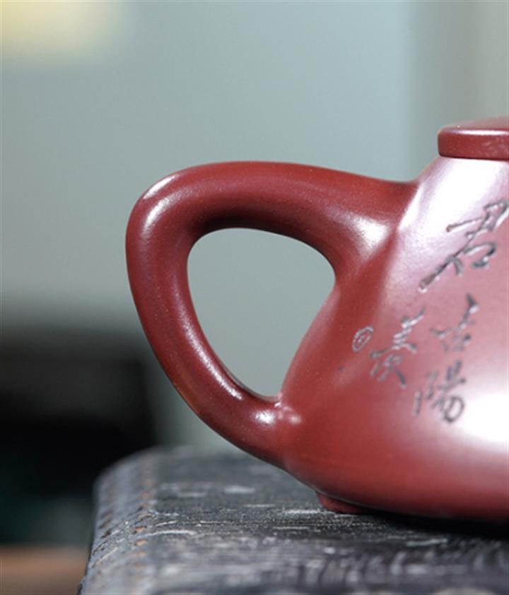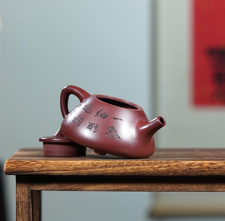 【泥料特點】砂土氣重,似淳實農民,日久使用,漸露鋒芒,養成變化,溫潤莊重。紫砂是壹種雙重氣孔結構的多孔性材質,氣孔微細,密度高。用紫砂壺沏茶,不失原味,且香不渙散,得茶之真香真味。紫砂使用越久,壺身色澤越發光亮照人,氣韻溫雅。紫砂壺長久使用器身會因撫摸擦拭,變得越發溫潤光澤。