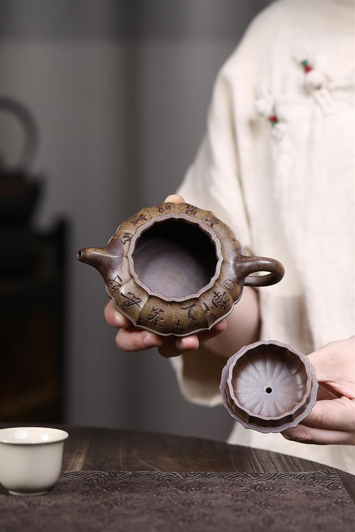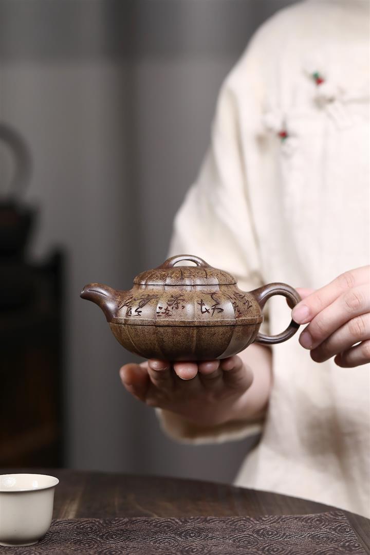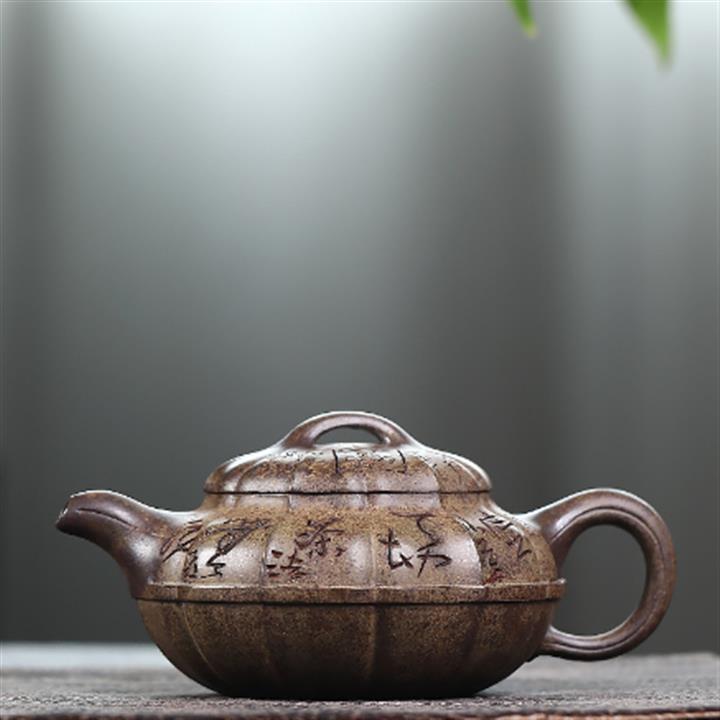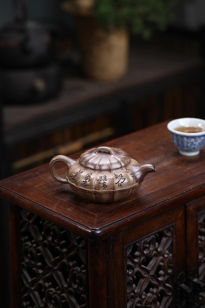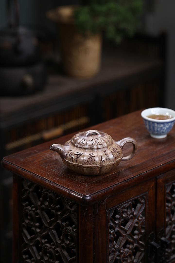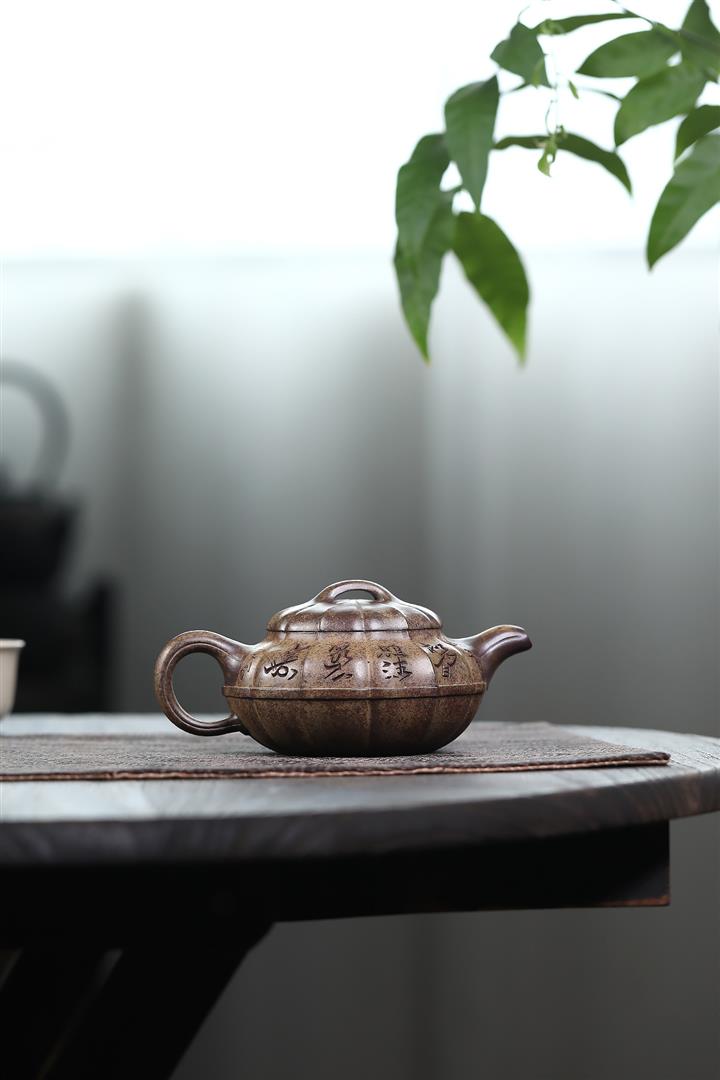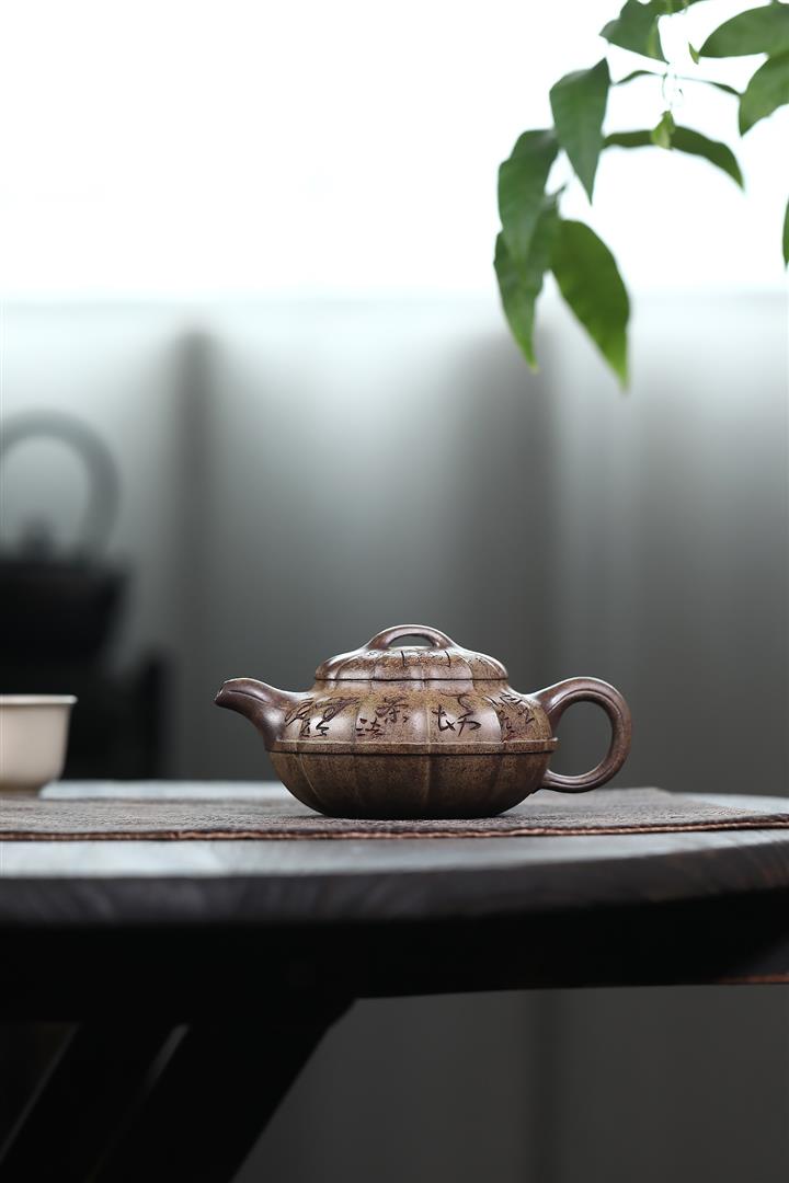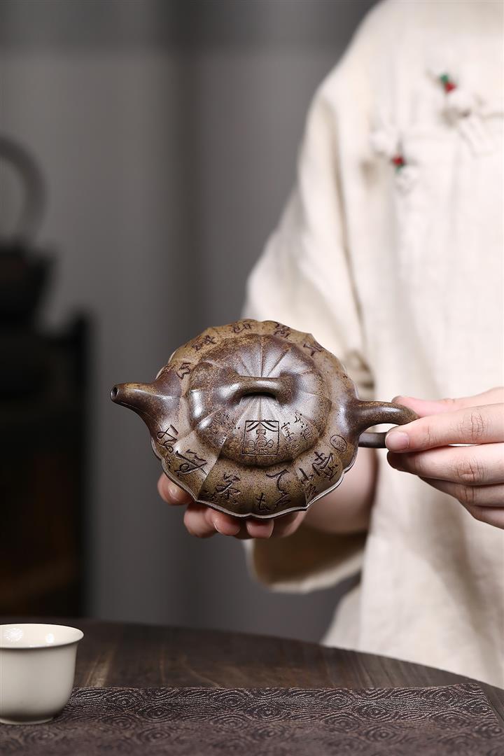 240cc原礦紫泥滿刻伏虎漢瓦茶壺POT8070